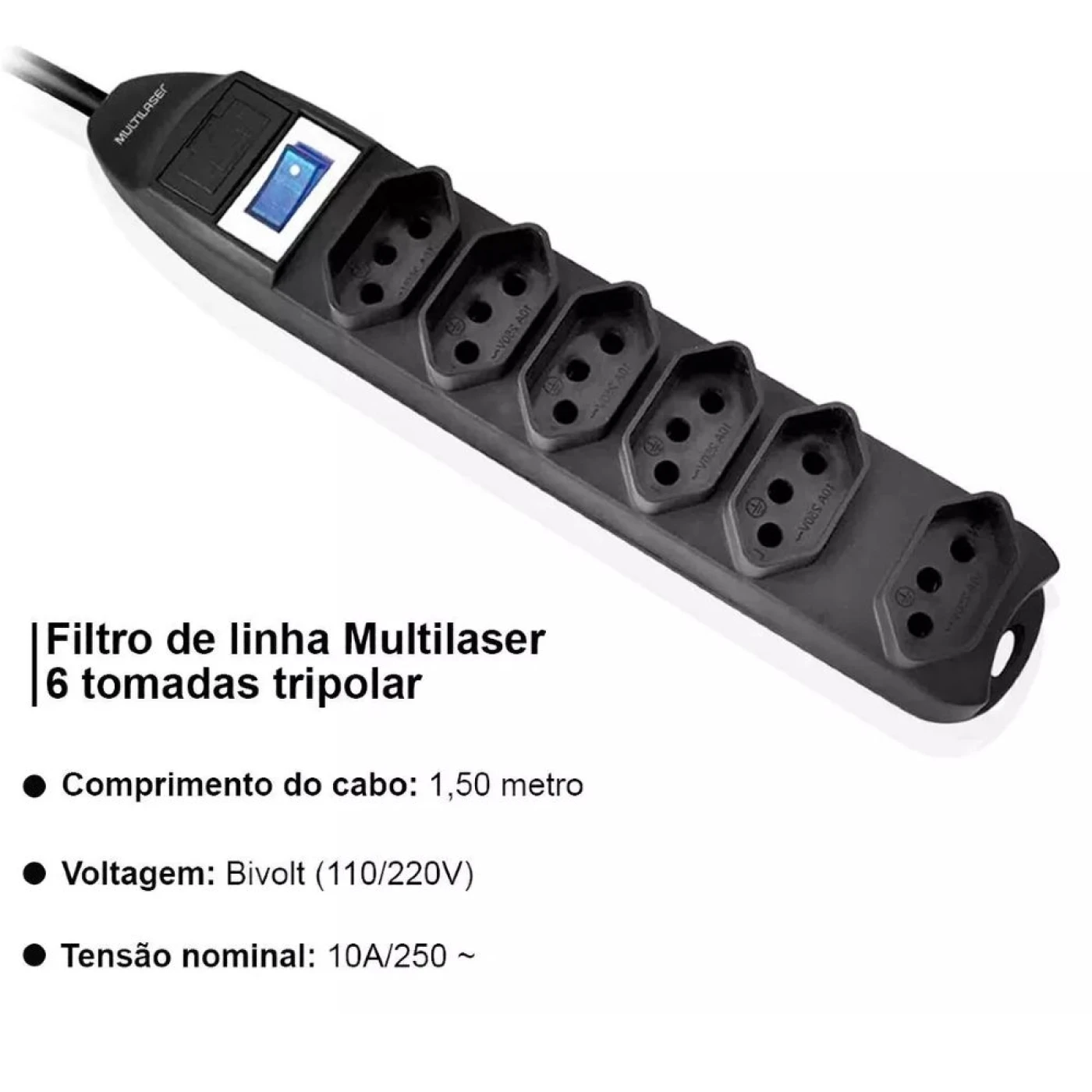 Filtro De Linha Multilaser com 6 Tomadas Preto