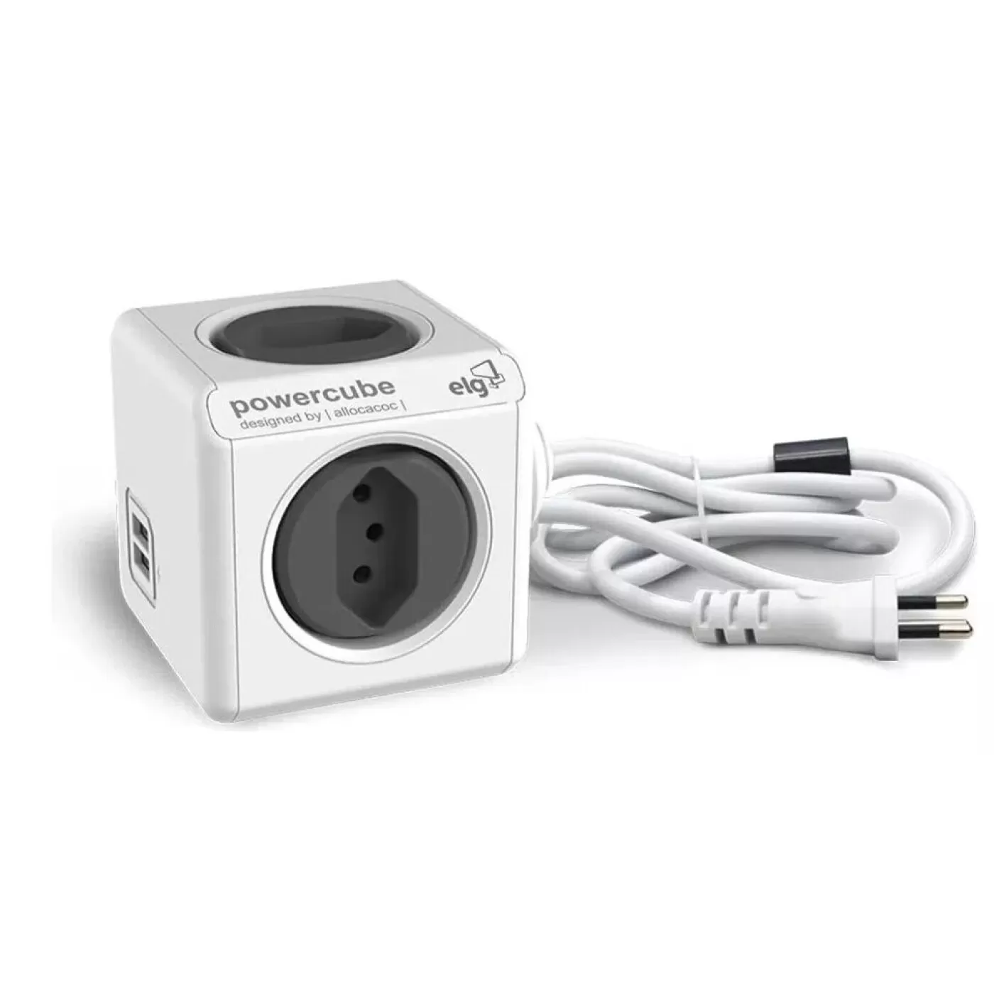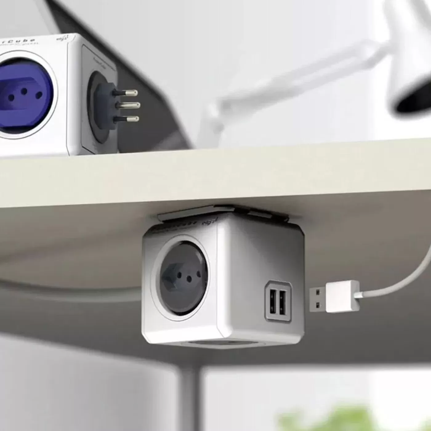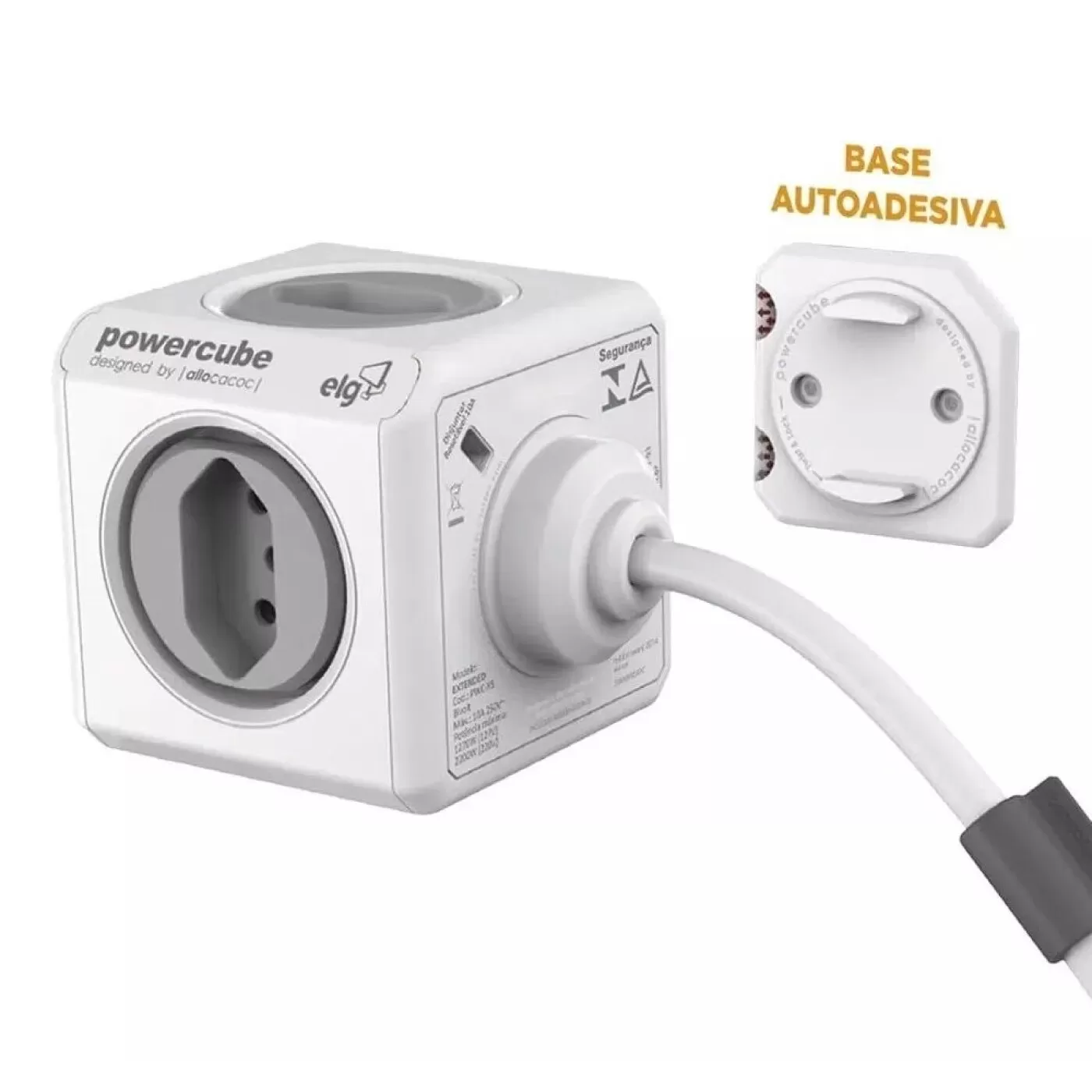 O PowerCube é o menor adaptador múltiplo de tomadas do mundo em formato de cubo. Possui cabo de 3 metros para utilização afastada da fonte de origem, 2 portas USB de 2.4A para carga rápida e ainda permite expandir uma tomada em até 4 pontos de energia e livre de bloqueios. Com seu design inovador, todas as tomadas são utilizadas sem que nenhum plugue impeça a conexão da tomada ao lado sendo facilmente ligados em qualquer ambiente como residências, hotéis e ambientes corporativos. Versátil, o modelo Extended USB também acompanha uma base autoadesiva (dock station) e removível sem deixar resíduos, que permite fixação em superfícies planas como paredes ou mesas. Seu exclusivo e inovador sistema de proteção para crianças (Child Lock) bloqueia a entrada das tomadas e impede que qualquer objeto seja inserido individualmente nos orifícios fase e neutro. A entrada é liberada somente quando os pinos entrarem na tomada simultaneamente. Para proteção dos equipamentos, o PowerCube possui disjuntor resetável de 10A sem necessidade de substituição. Em caso de sobrecarga e picos de energia, basta resetá-lo. Bivolt automático, com potência máxima de 1270W em 127V ou 2200W em 220V (total de tomadas). Estrutura produzida em polímero antichamas e conectores internos em cobre de alta pureza. Vencedora do prêmio Reddot Award de design.