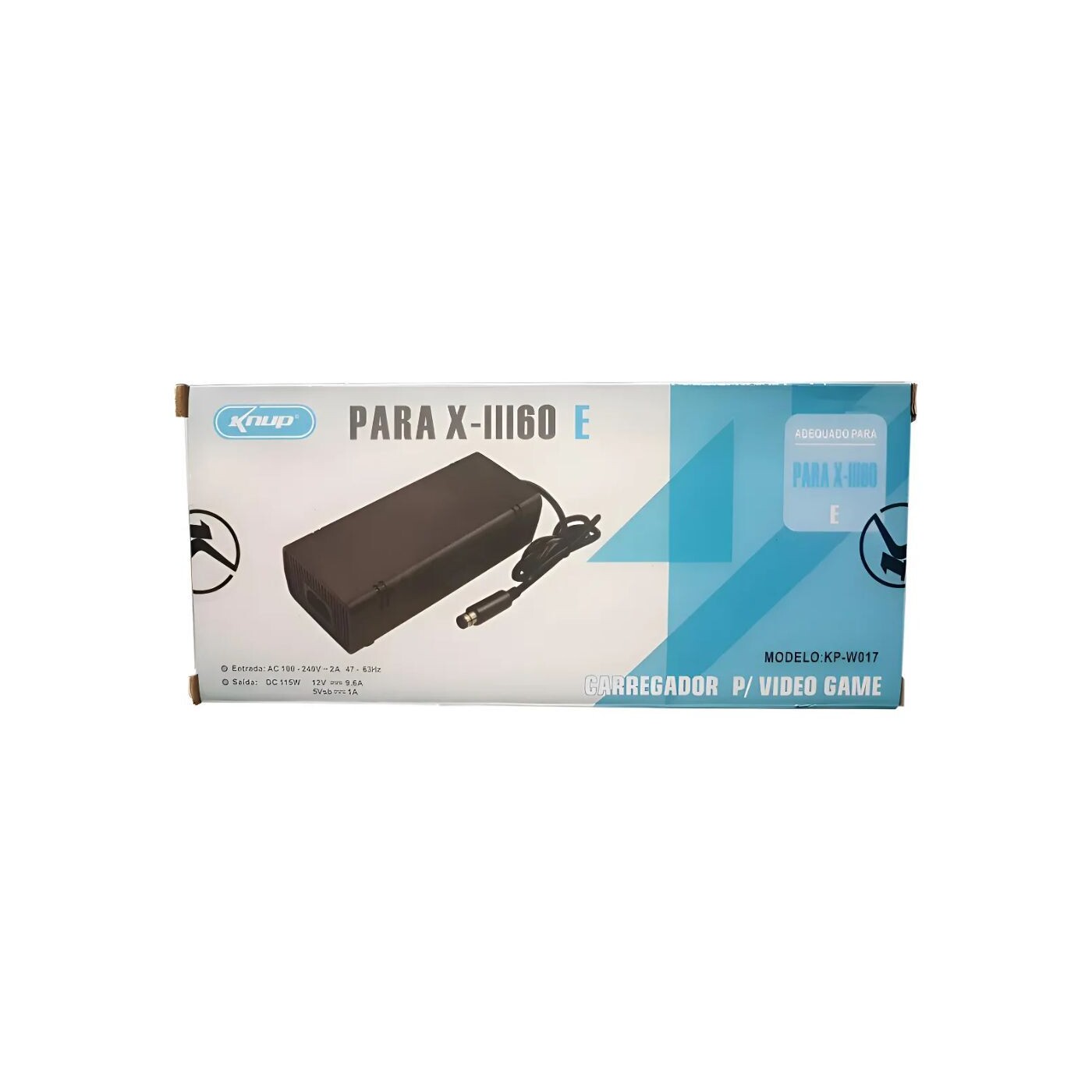 Fonte de alimentação bivolt para Xbox 360E da marca Knup, ideal para reposição de fontes originais danificadas. Oferece excelente desempenho, baixo ruído e proteção contra sobrecarga e superaquecimento, garantindo alimentação estável e segura ao console.