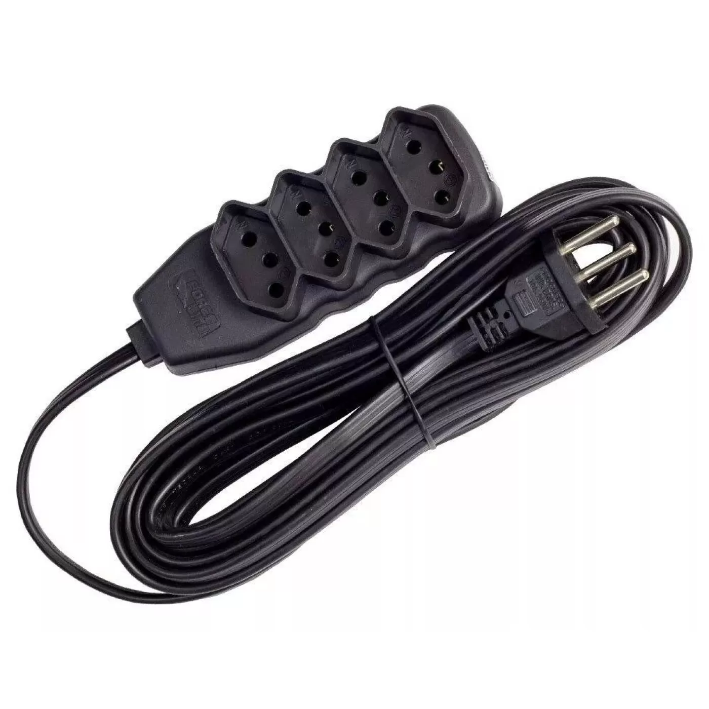 Extensão Tripolar 4 Tomadas 10A 5M Slim Preta - Force Line