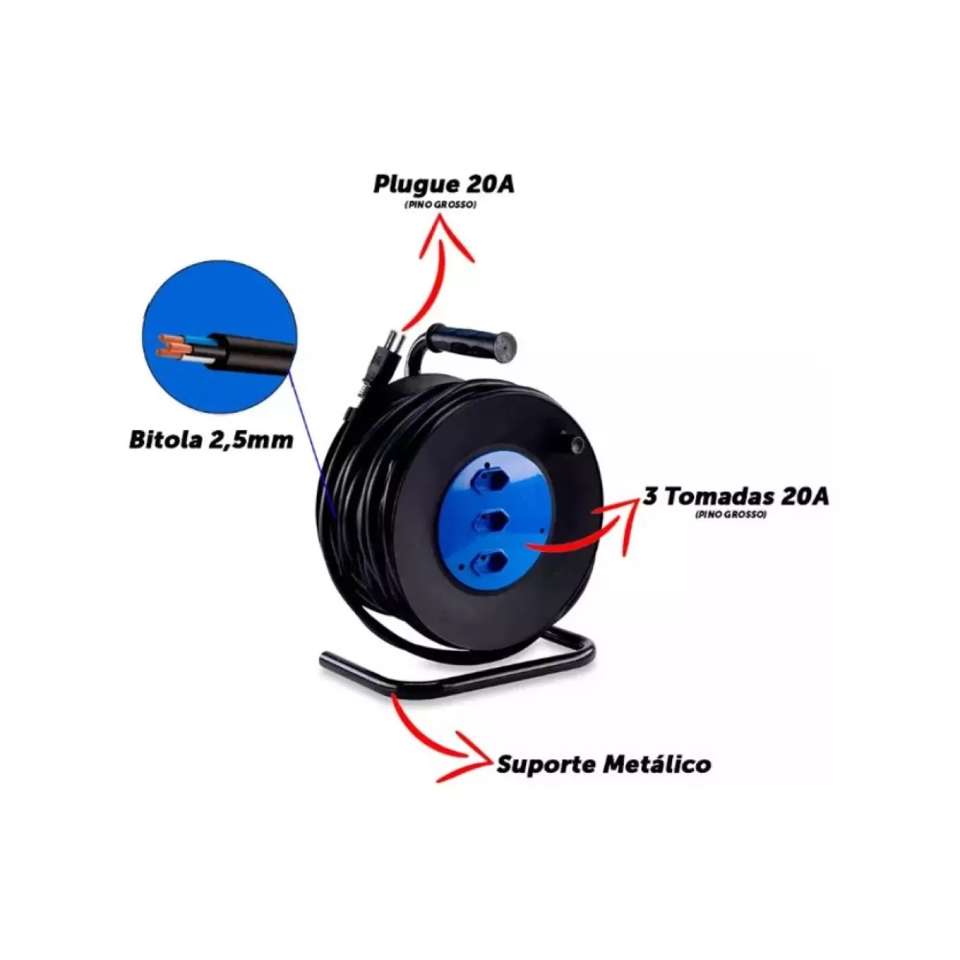Para ampliar o alcance da sua tomada e multiplicar, com a facilidade de manter o fio enrolado no carretel