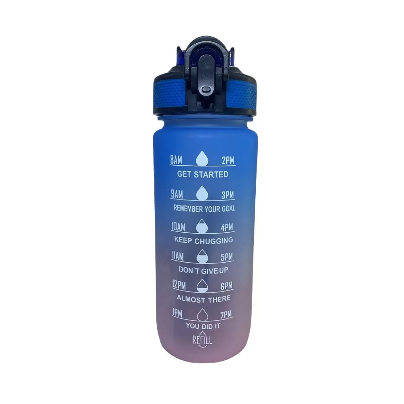 A combinação de cores azul e rosa confere um visual atraente e contemporâneo à garrafa, tornando-a uma opção tanto para o público feminino quanto masculino. Essas cores também transmitem uma sensação de frescor e energia, incentivando o usuário a manter-se hidratado ao longo do dia.