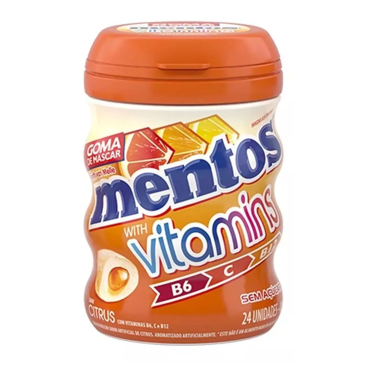 Goma de Mascar Mentos é deliciosa e refrescante, com sabor de frutas cítricas. Enriquecida com vitaminas C, B6 e B12 para dar um UP no seu dia.