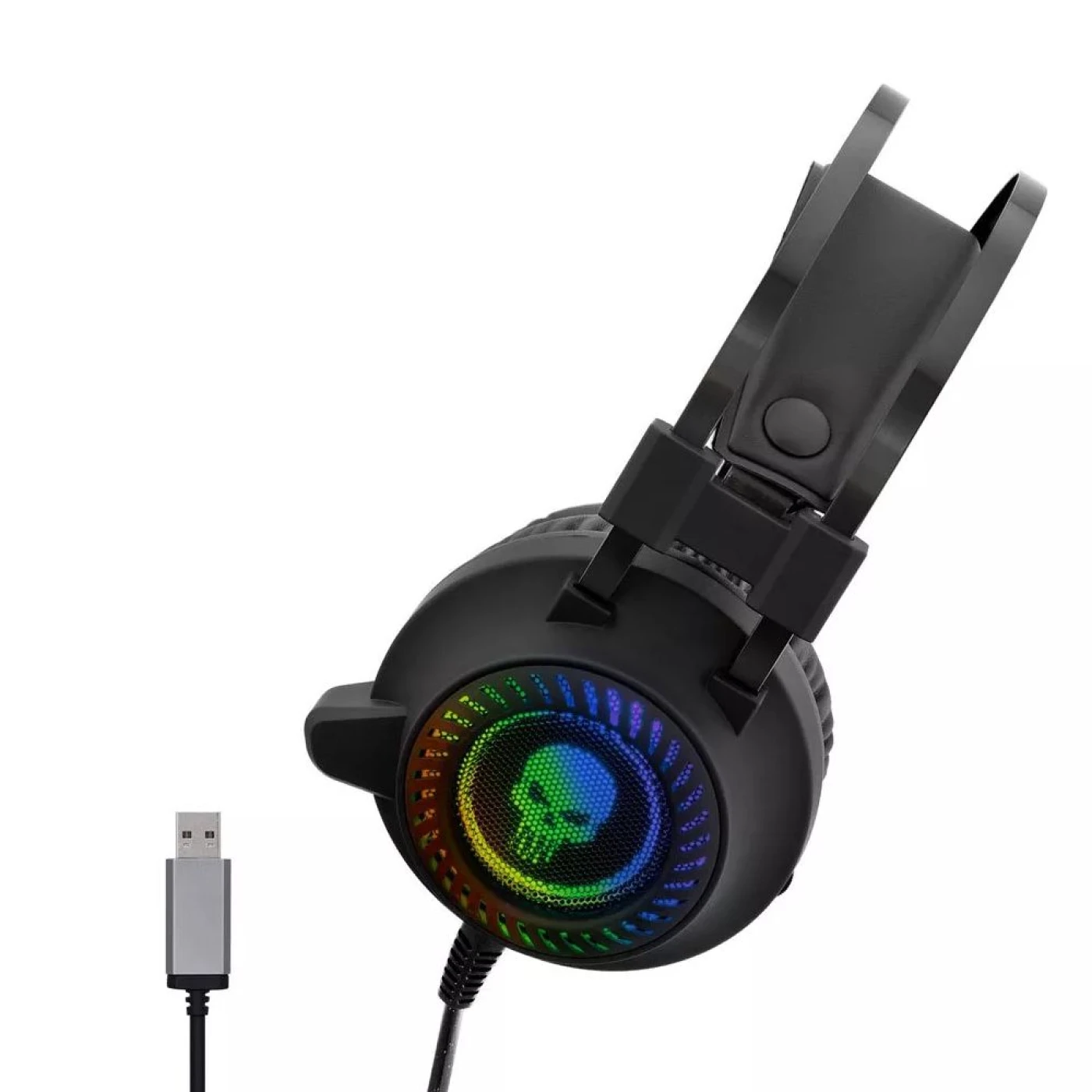 Possui microfone integrado omnidirecional, que garante uma captação precisa da voz. Conta ainda com controle de volume integrado e iluminação RGB colorida.