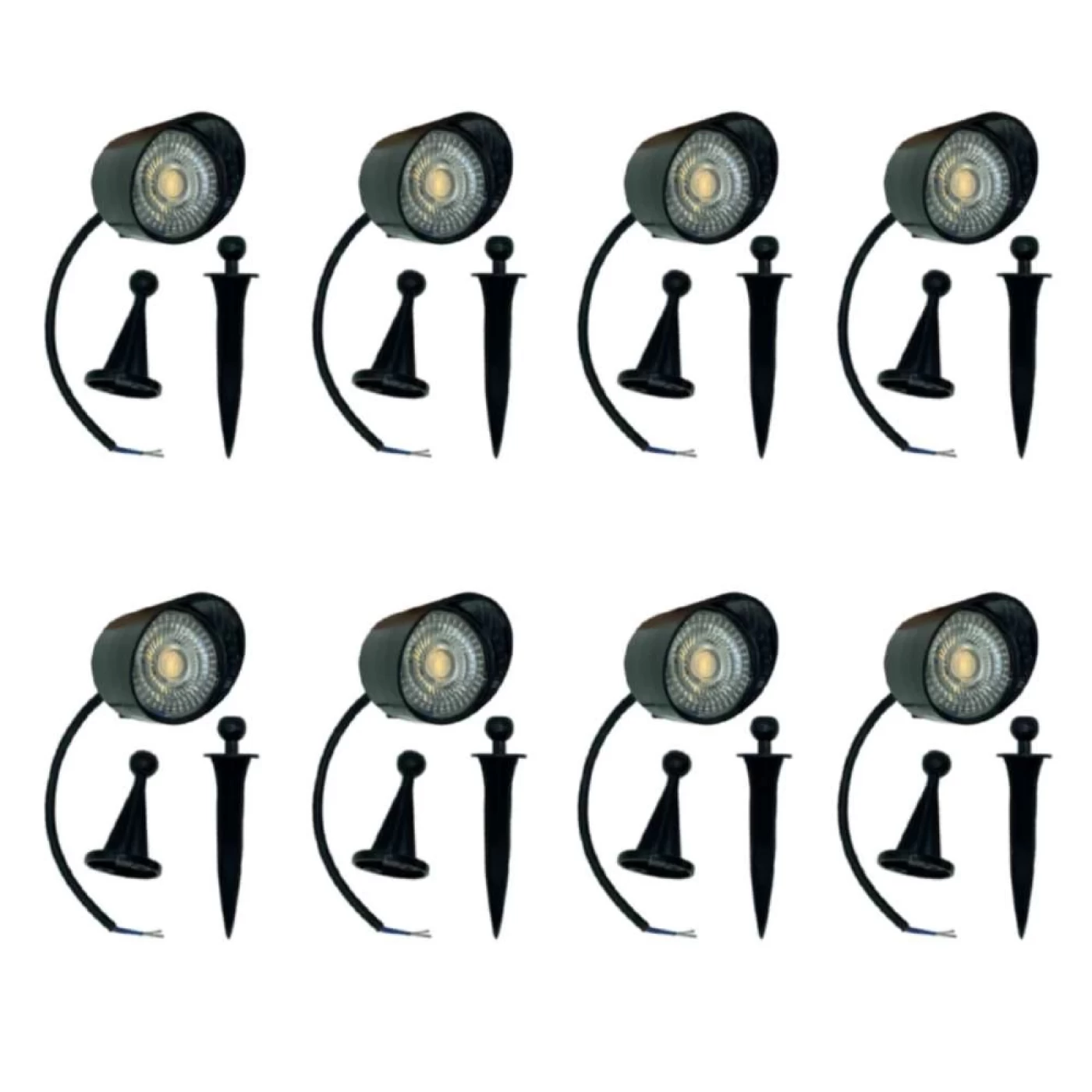 Kit 8 Espeto Spot Jardim Led Clean Preto 5w 6.500k Bivolt