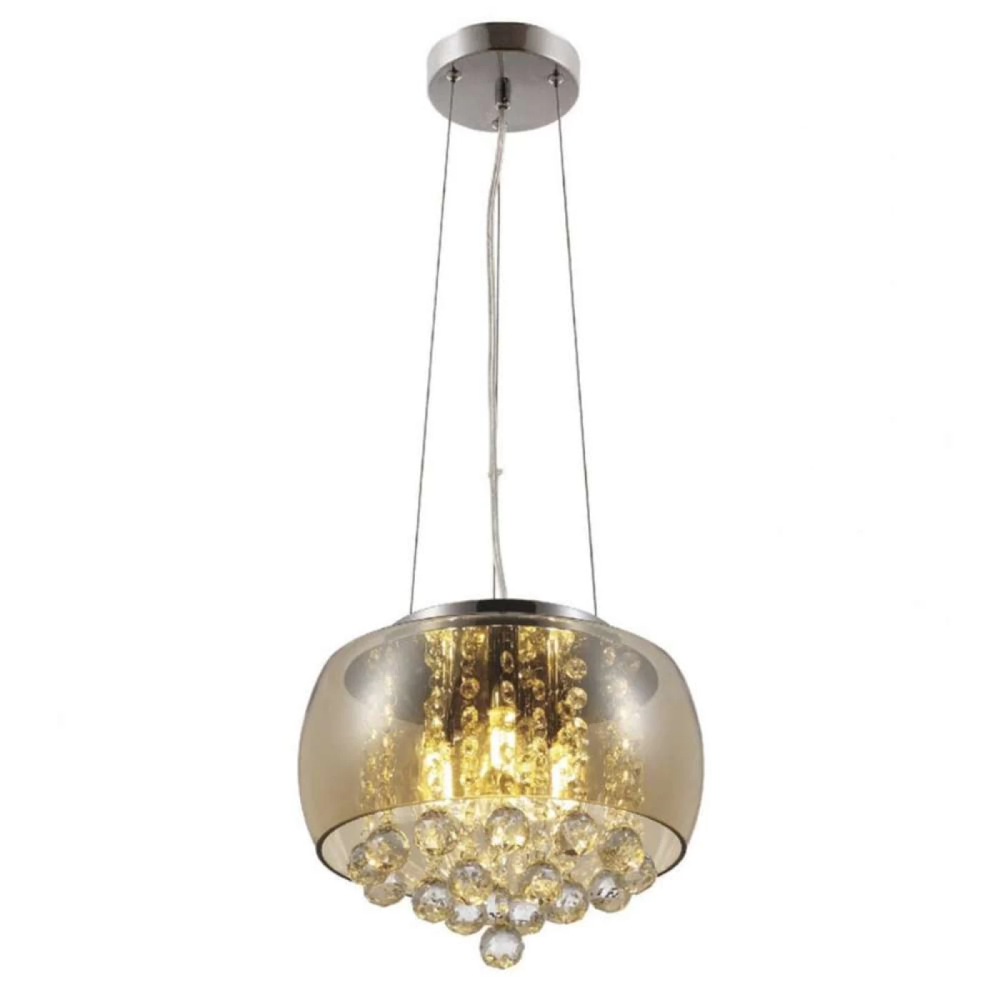 Luminária estilo moderno tamanho médio com cúpula de vidro cor âmbar, pingentes de cristal k9, pode ser instalado como plafon ou pendente.