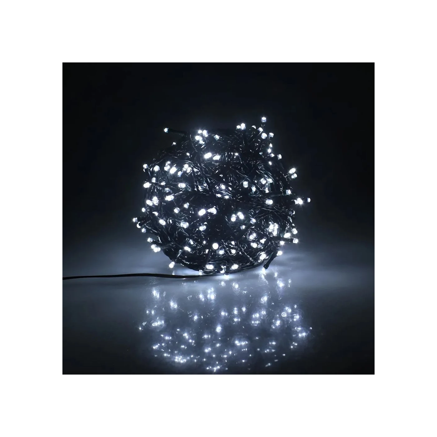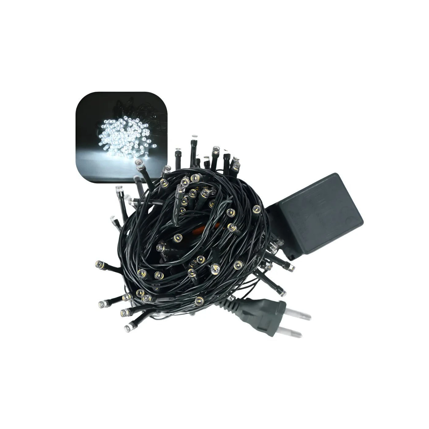 Pisca pisca com 200 LEDs de luz branca ideal para decoração natalina, festas e eventos. Possui 17,5 metros de comprimento, fio verde que se camufla perfeitamente em árvores e enfeites, e alimentação 220V. Oferece iluminação intensa, durável e de baixo consumo energético.