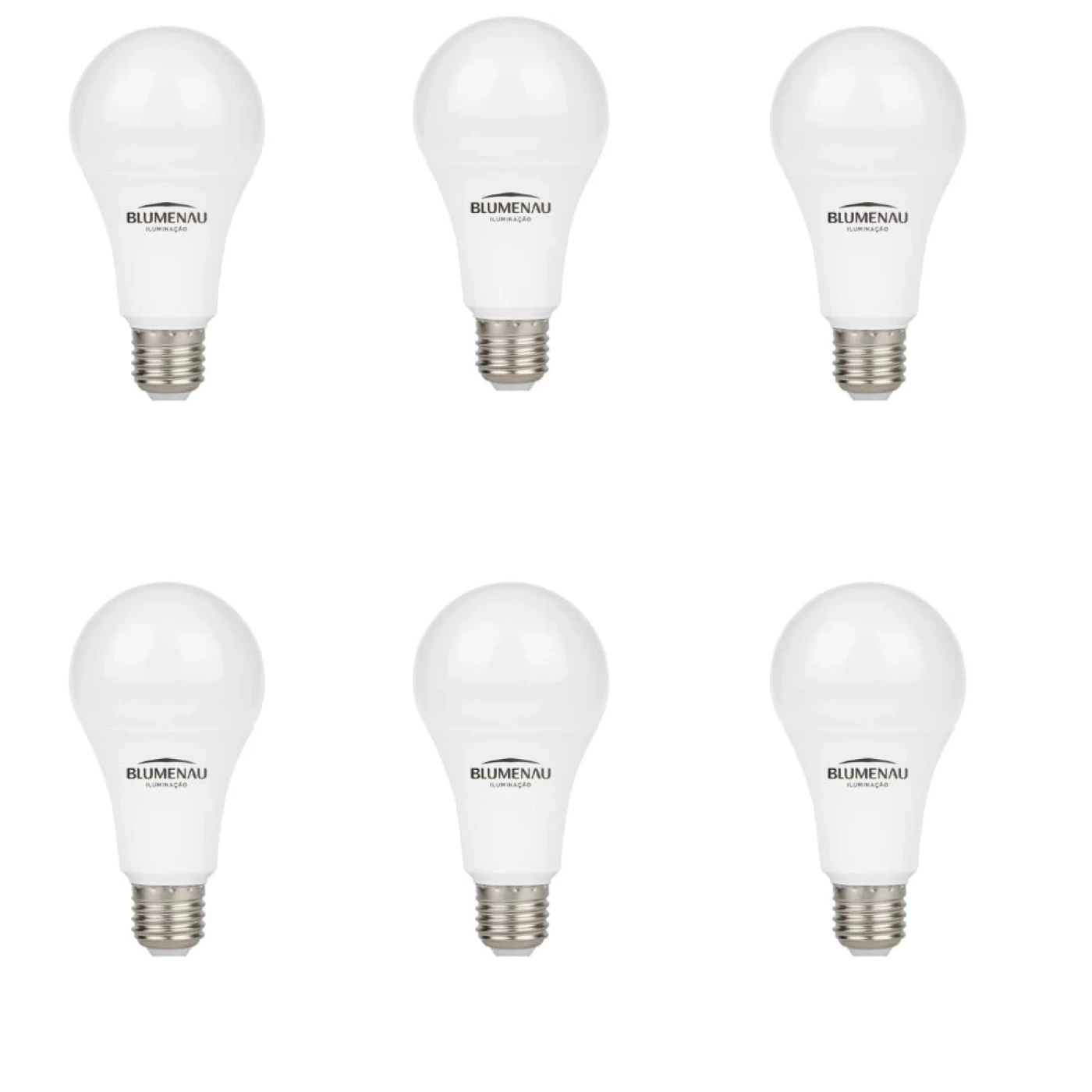 Kit 6 Lâmpada LED A60 E27 9w 3000k Branco Quente Bivolt Blumenau