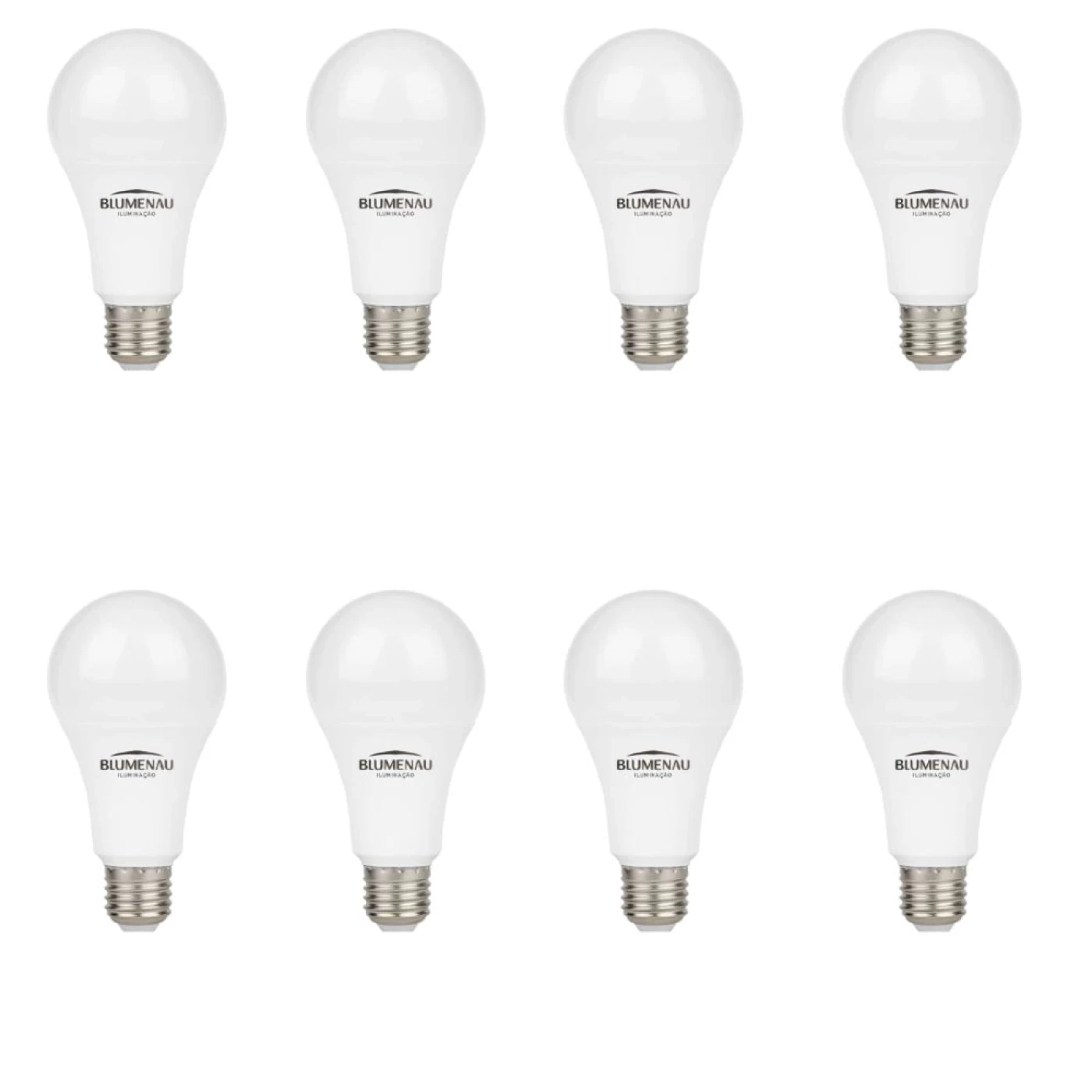 Kit 8 Lâmpada LED A60 E27 9w 3000k Branco Quente Bivolt Blumenau