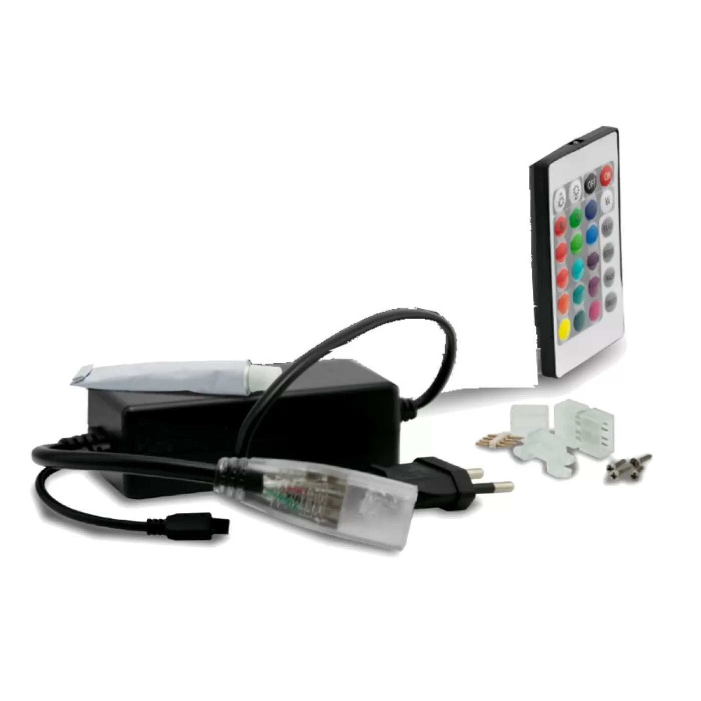 O conjunto inclui uma variedade de acessórios essenciais para a instalação e personalização das fitas LED RGB. Entre os itens presentes, destacam-se os conectores de fácil encaixe, permitindo uma montagem simples e rápida, sem a necessidade de conhecimentos técnicos avançados. Além disso, o kit conta com clips de fixação e suportes resistentes, garantindo uma instalação segura e durável.