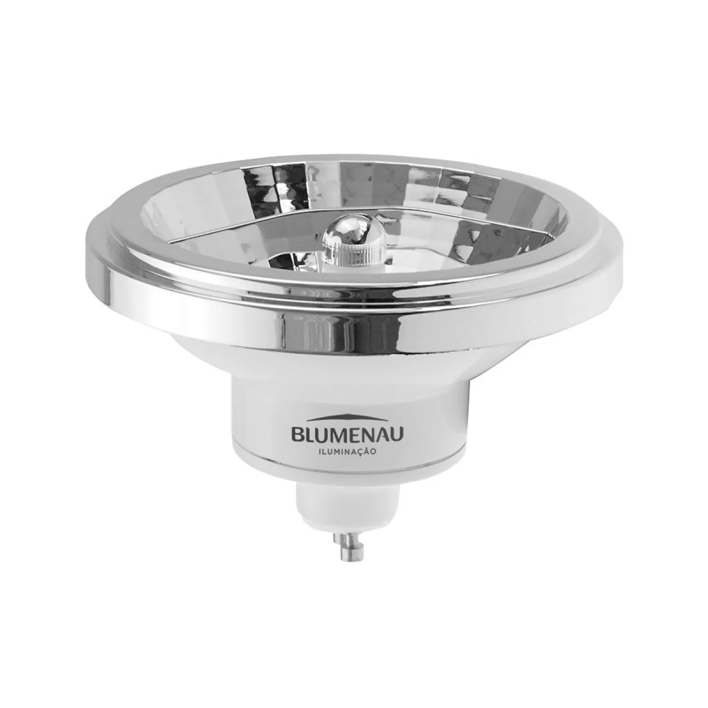 A Lâmpada LED AR111 12W Da Blumenau Iluminação possui design contemporâneo. Com borda metálico e ótica recuada que causa redução de ofuscamento, compõe com elegância luminárias e spots.