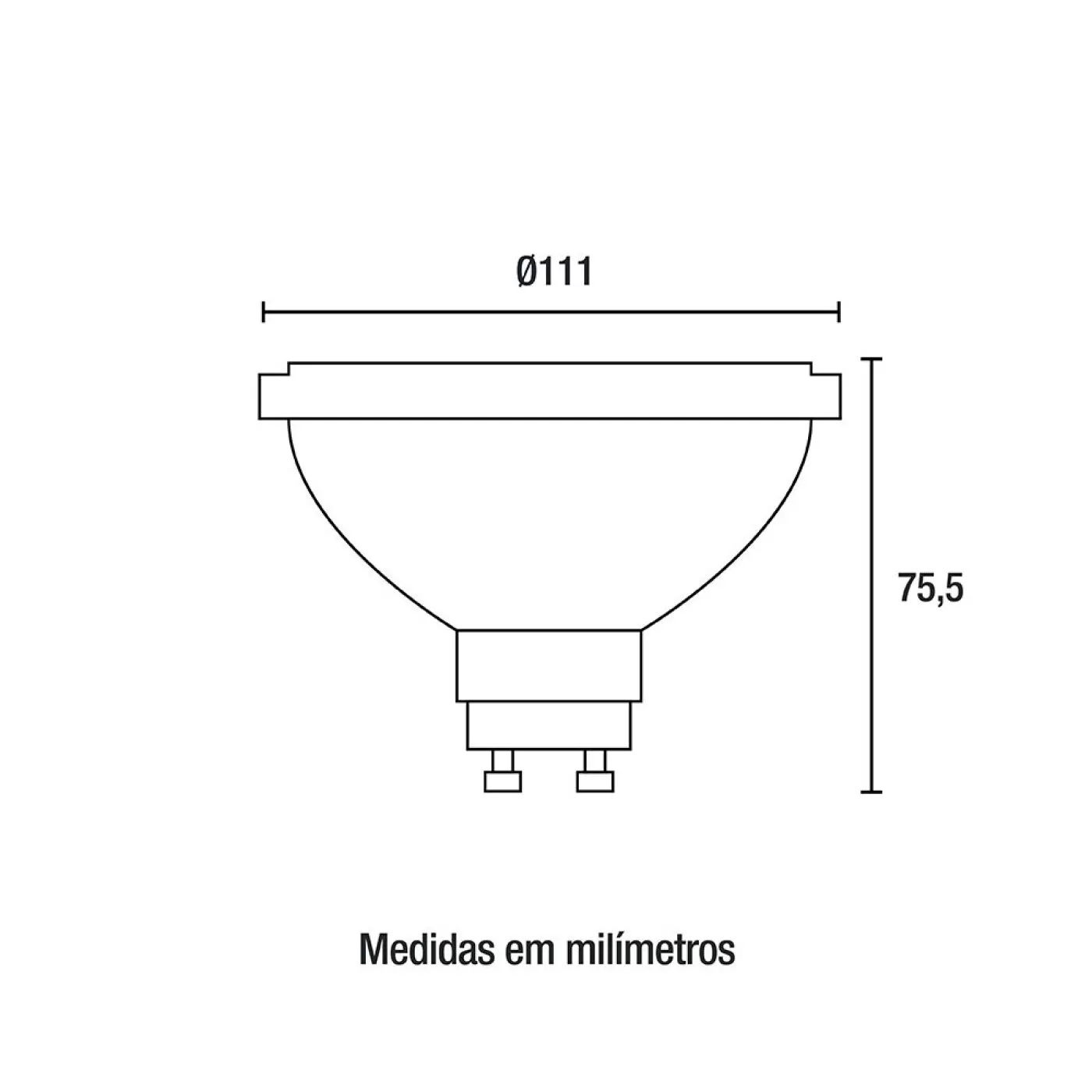 Possui corpo em alumínio e policarbonato, soquete GU10 e atende as variações de tensão entre 110V e 220V, além de ter duas opções de temperatura de cor branco quente 2700k.