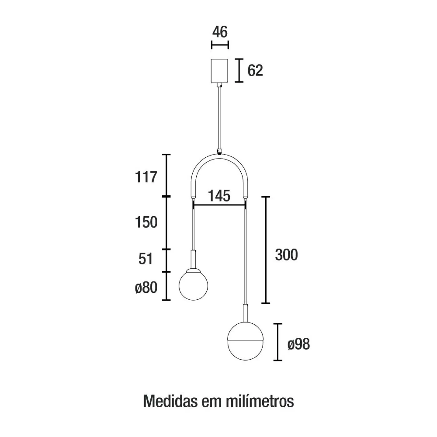 O pendente Macadâmia duplo é indicado também para banheiros laterais e sobre mesas e cabeceiras.