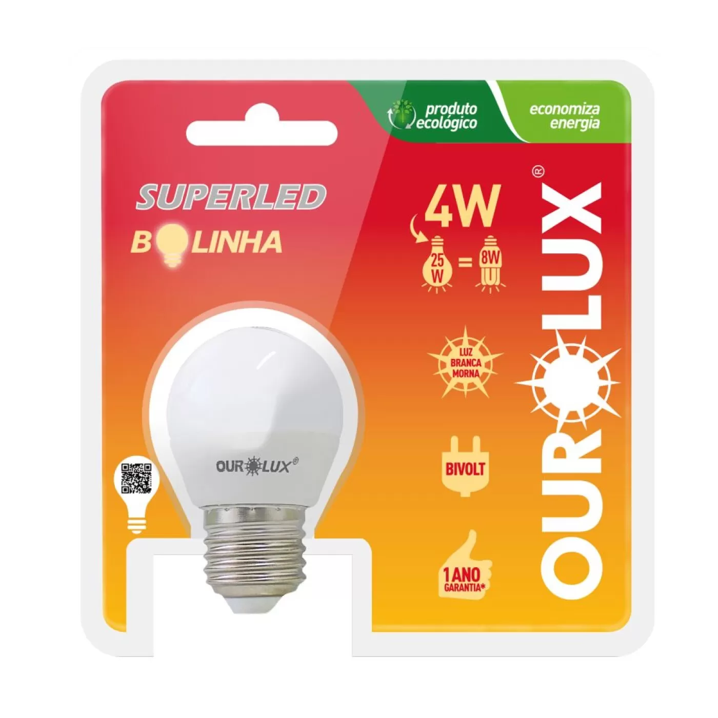 SUPERLED BOLINHA G45, proporciona uma luz difusa, suave e aconchegante, ideal para ambientes confortáveis. Possui formato decorativo, indicado para lustres, abajur e ambientes onde a lâmpada fique visível, não aquece o ambiente devido a tecnologia.