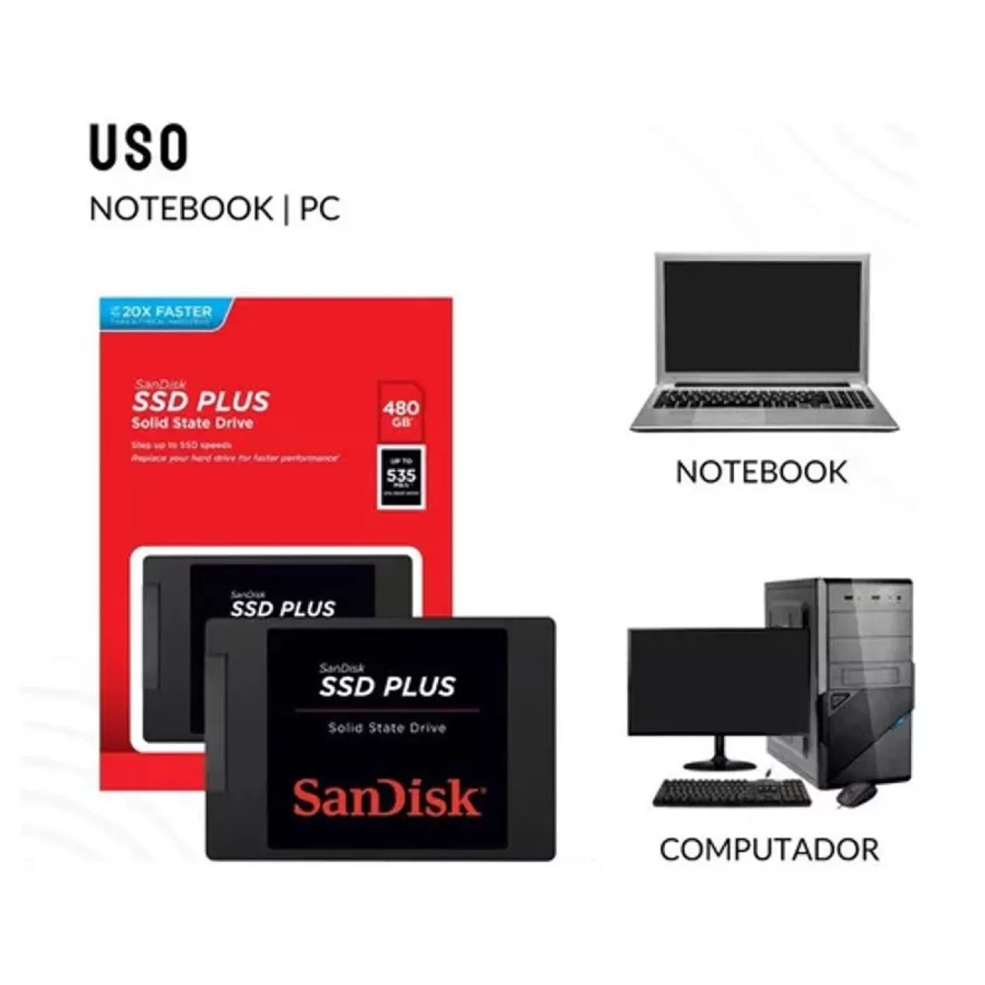 Se você procura aumentar o desempenho do seu computador, a linha SSD Plus da SanDisk é a indicada. Esta unidade de estado sólido melhora os tempos de inicialização e desligamento do sistema, também agiliza o acesso aos seus documentos digitais pessoais. Jogos?, atividades diárias de trabalho?, ou editar e reproduzir arquivos multimídia? Toda essa carga de trabalho é otimizada pelo dispositivo no seu PC, adicionado ao seu funcionamento silencioso e baixo consumo de energia.