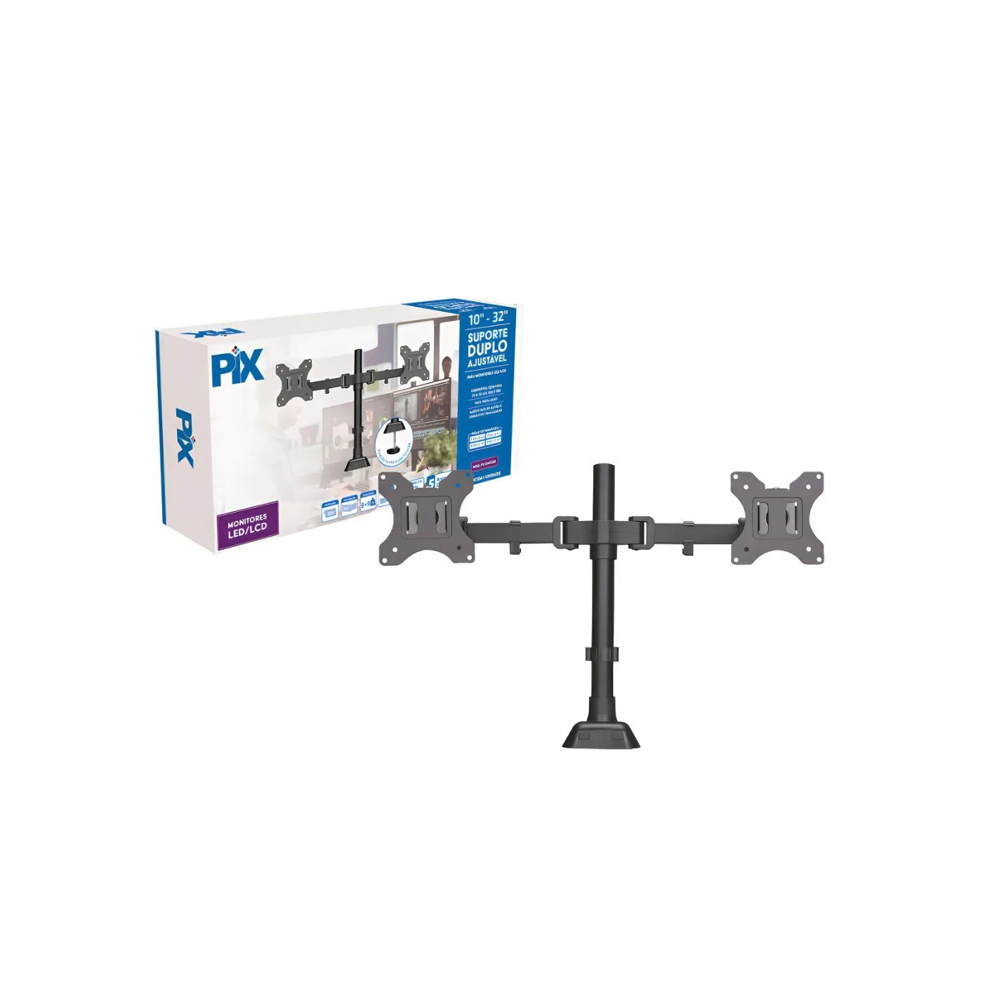 Suporte De Monitor Ajustável 10-32 Polegadas Pix Px-Dme32d Articulado