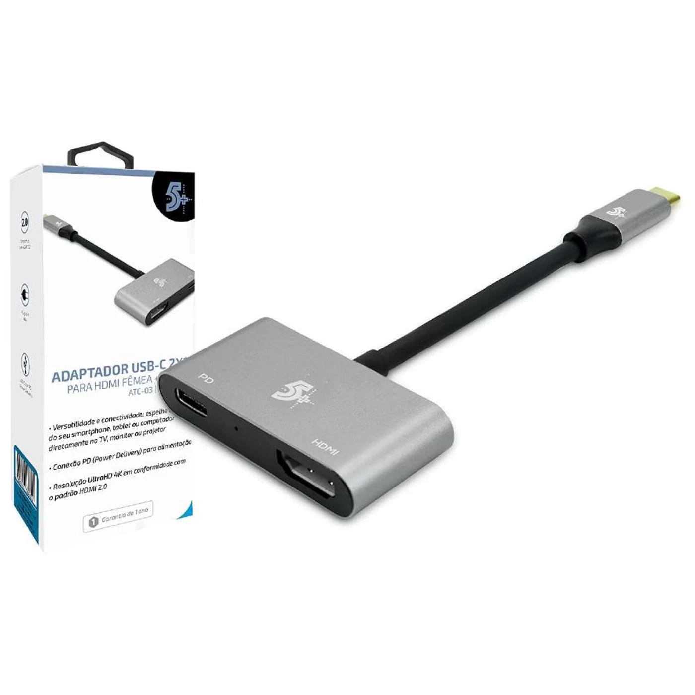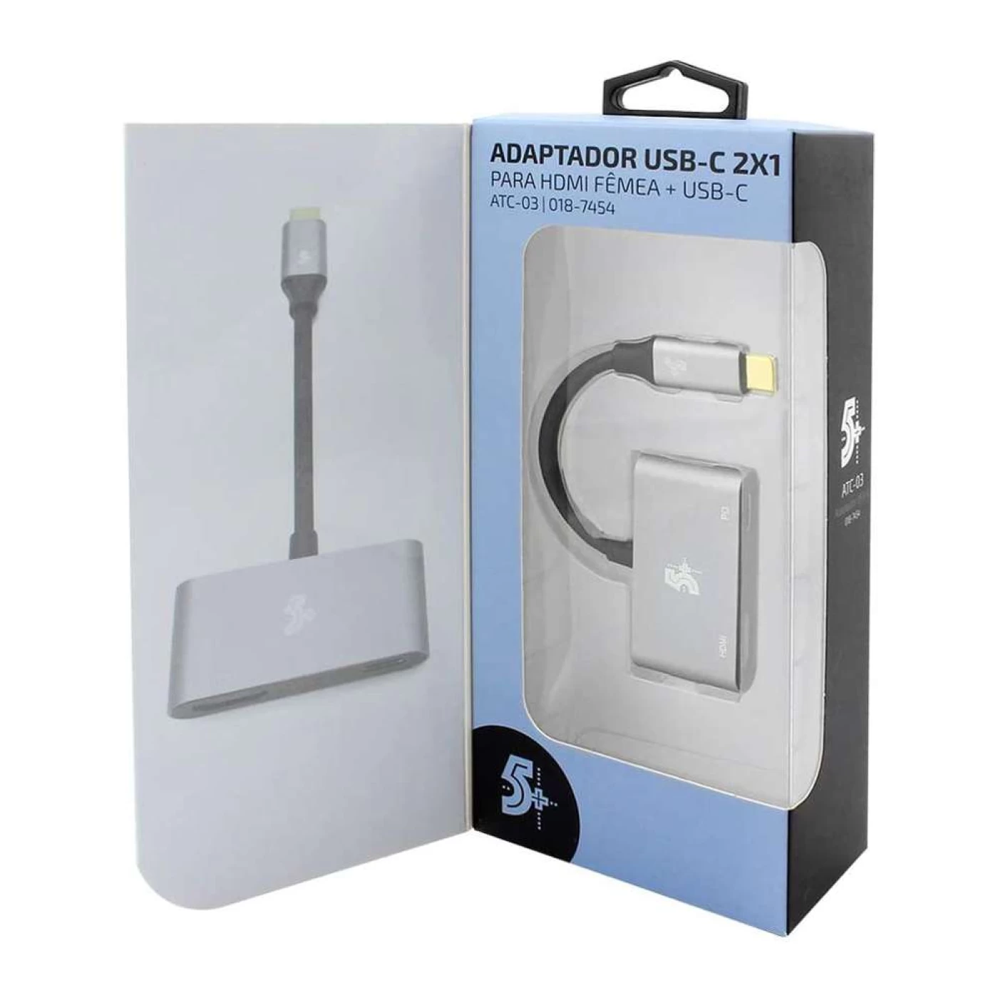 Cabo Adaptador 2 em 1 USB-C = HDMI + USB-C