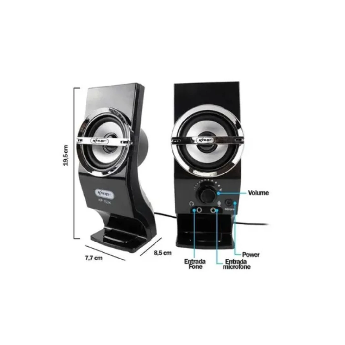 A caixa de som Knup KP-7024 é uma solução prática e compacta para quem deseja melhorar a qualidade de áudio em notebooks e computadores. Com design moderno na cor preta e acabamento elegante, oferece 5W de potência total (2x 2,5W RMS), garantindo um som claro para músicas, vídeos e chamadas. Ideal para uso doméstico ou no escritório, é alimentada via USB, dispensando o uso de tomadas, e possui conexão P2 (3,5mm), compatível com a maioria dos dispositivos com saída de áudio.