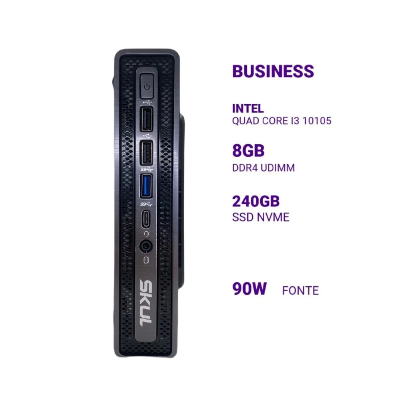 O Mini Computador Business B300 é uma solução compacta e eficiente para empresas que precisam de uma máquina de alta qualidade para realizar suas atividades externas. Com um processador Quad Core i3 10105, memória RAM de 8GB DDR4 e um SSD NVME de 240GB, este mini computador fornece excelente desempenho e velocidade para executar tarefas simples e complexas.