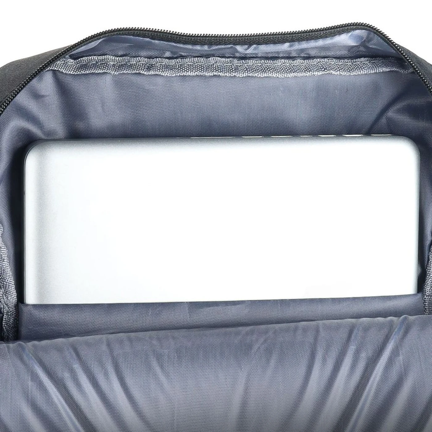 Tem um amplo espaço interno, compartimento próprio para notebook e porta USB externa.