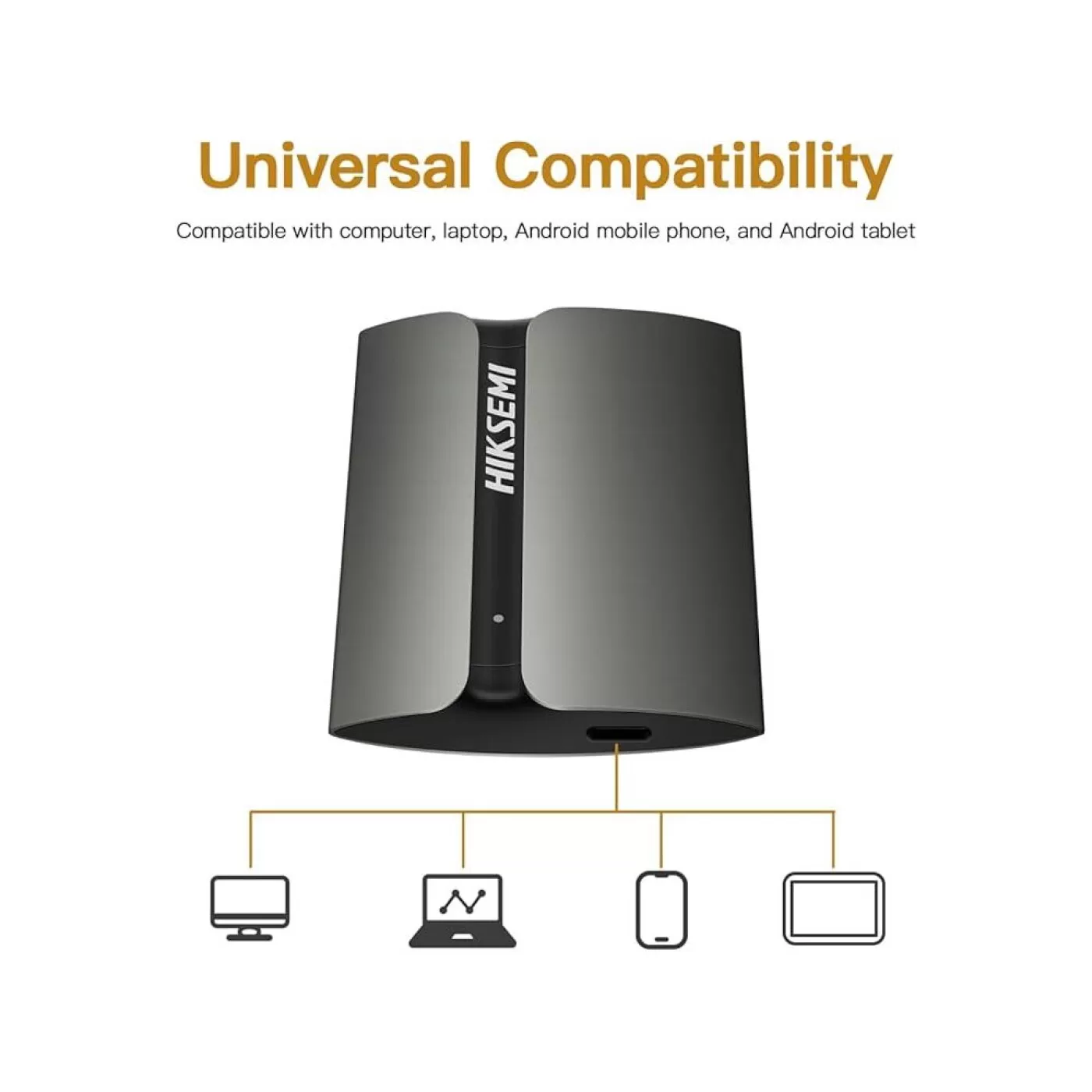 Características: - SSD externo de alto desempenho Hiksemi Shield - Conexão USB-C Especificações: Formato do SSD: Externo Capacidade: 1TB Velocidade máxima de leitura: 560MB/s Velocidade máxima de escrita: 500MB/s Material: Alumínio Temperatura de operação: 0 à 40? Tamanho do produto: 78.3mm x 61.4mm x 12.45mm Peso do produto: 48g Peso Bruto com embalagem(g): 124 Peso líquido com embalagem (g): 94 Dimensões da Embalagem(mm): 105 x 105 x 45