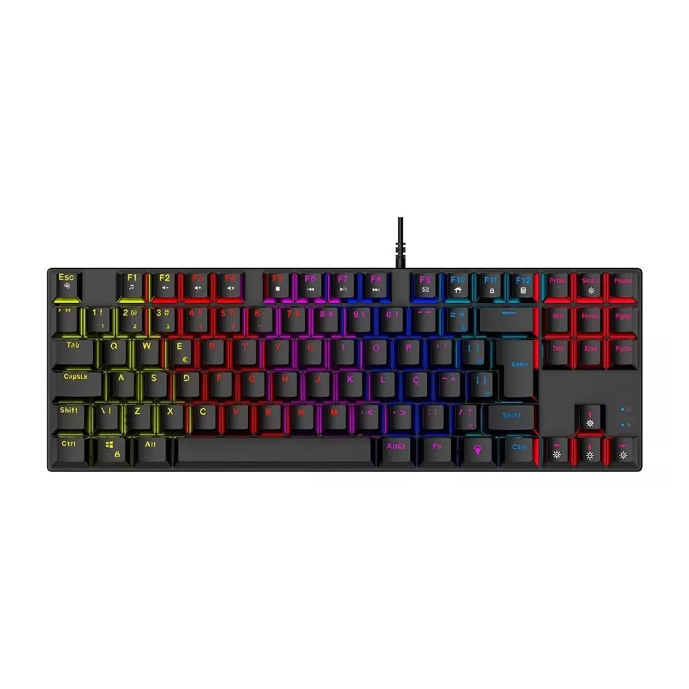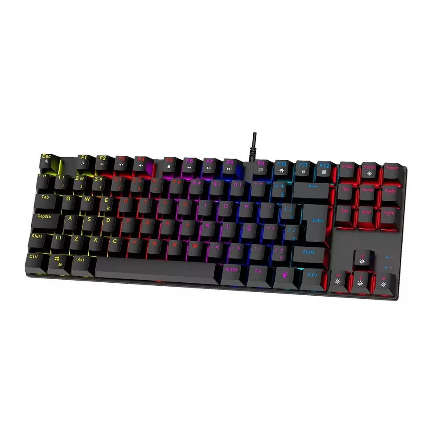 Modelo: Teclado Gamer Mecânico Royal Cross TKL Blue Switch ABNT2 RGB Preto Warrior - TC312