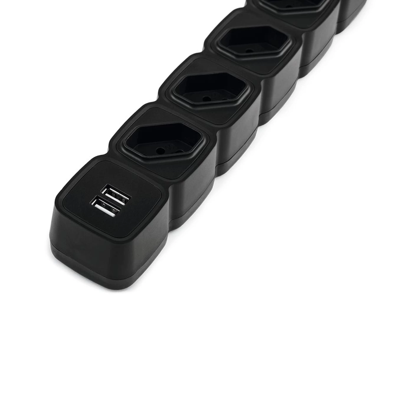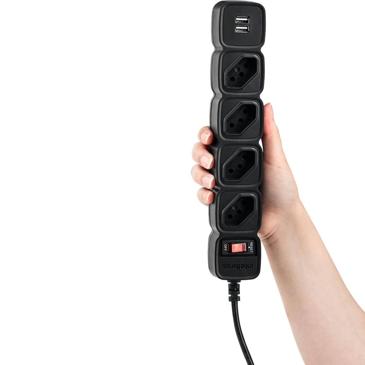 O protetor eletrônico EPE 204 USB tem 4 tomadas e 2 portas USB para conectar e carregar seus dispositivos sem preocupações. Ele está disponível na cor preta ou branca, e com 1 metro de cabo. Além disso, o EPE tem dupla proteção com chave inteligente contra curto-circuito e sobrecarga, e varistor contra surtos de tensão.