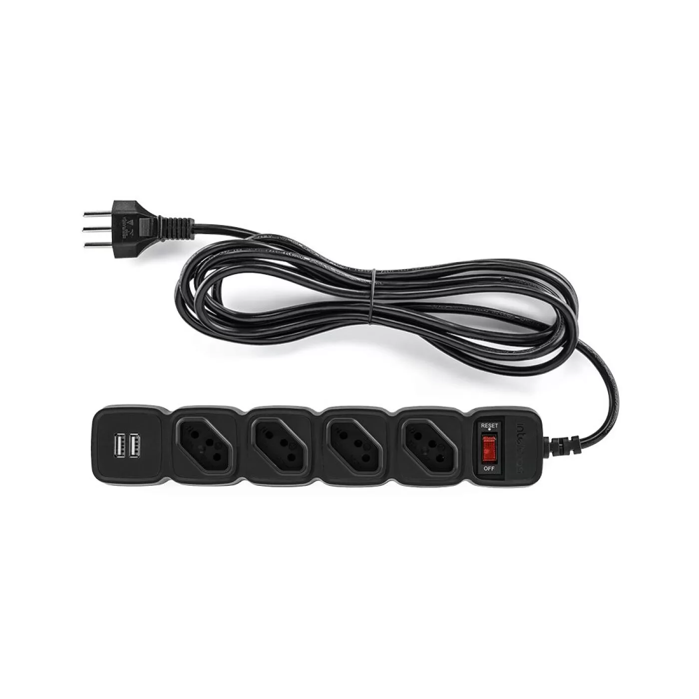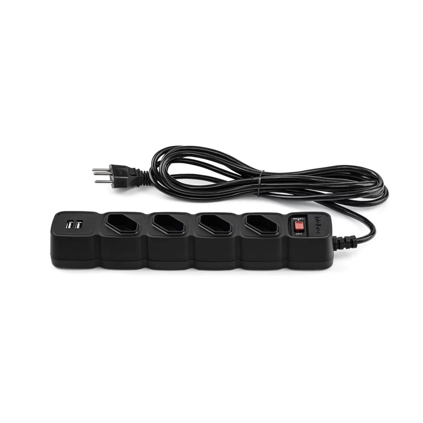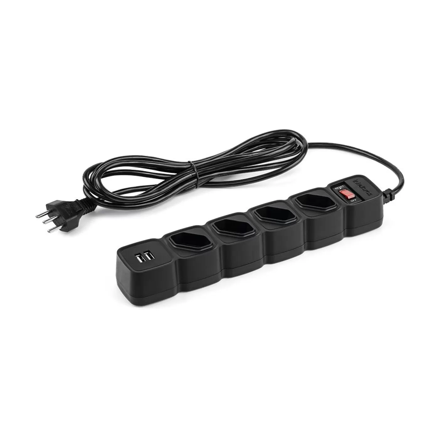 Com 4 tomadas em disposição diagonal, o EPE 204 USB facilita a conexão de plugues que ocupam mais espaço.