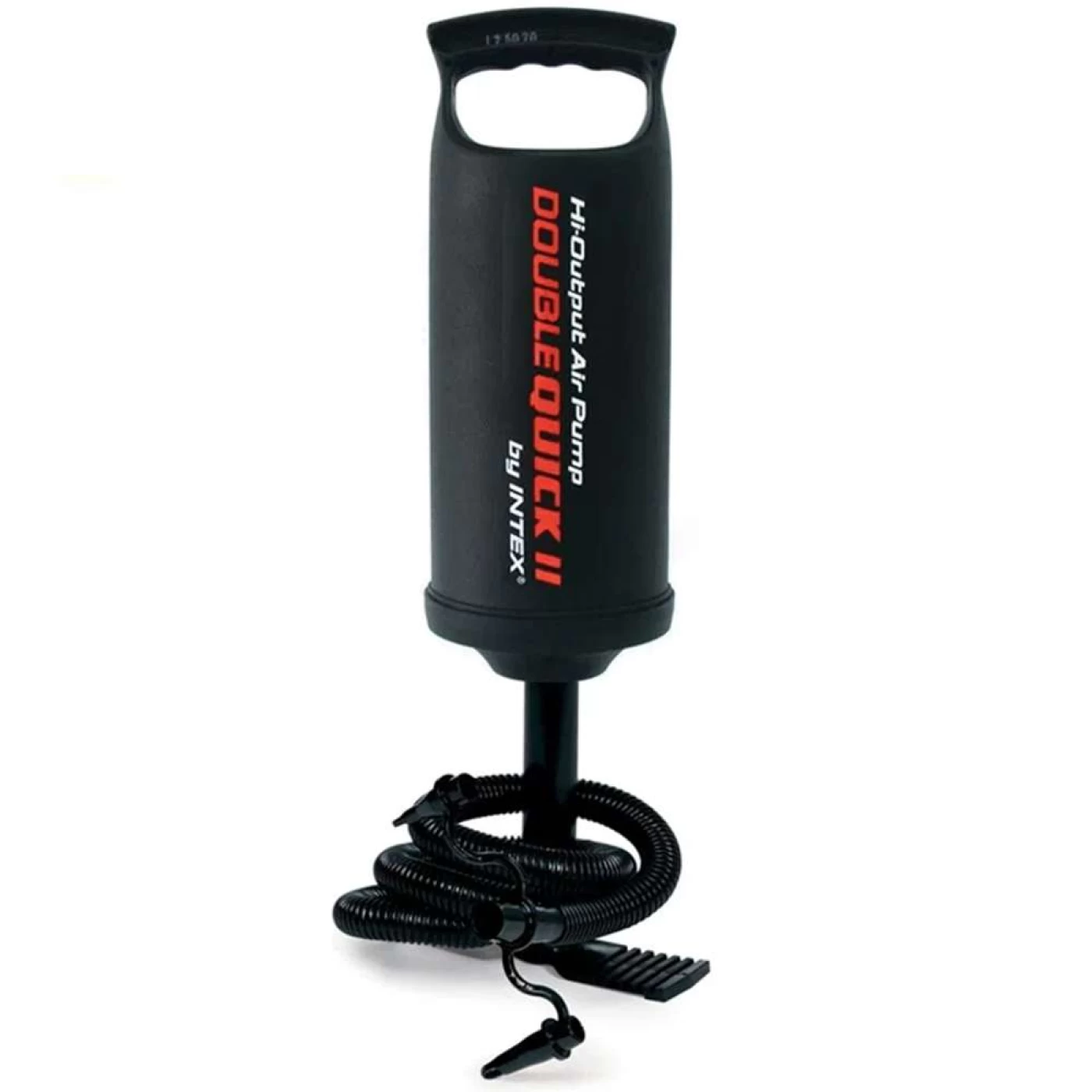 » A Bomba de Ar Manual Double Quick Média Intex é o acessório ideal para complementar o seu inflável. Com 3 bocais diferentes, a Bomba Manual da Intex pode ser usada em diferentes infláveis, como colchões, poltronas, barcos, entre outros, sendo compatível com diferentes tamanhos de válvula.