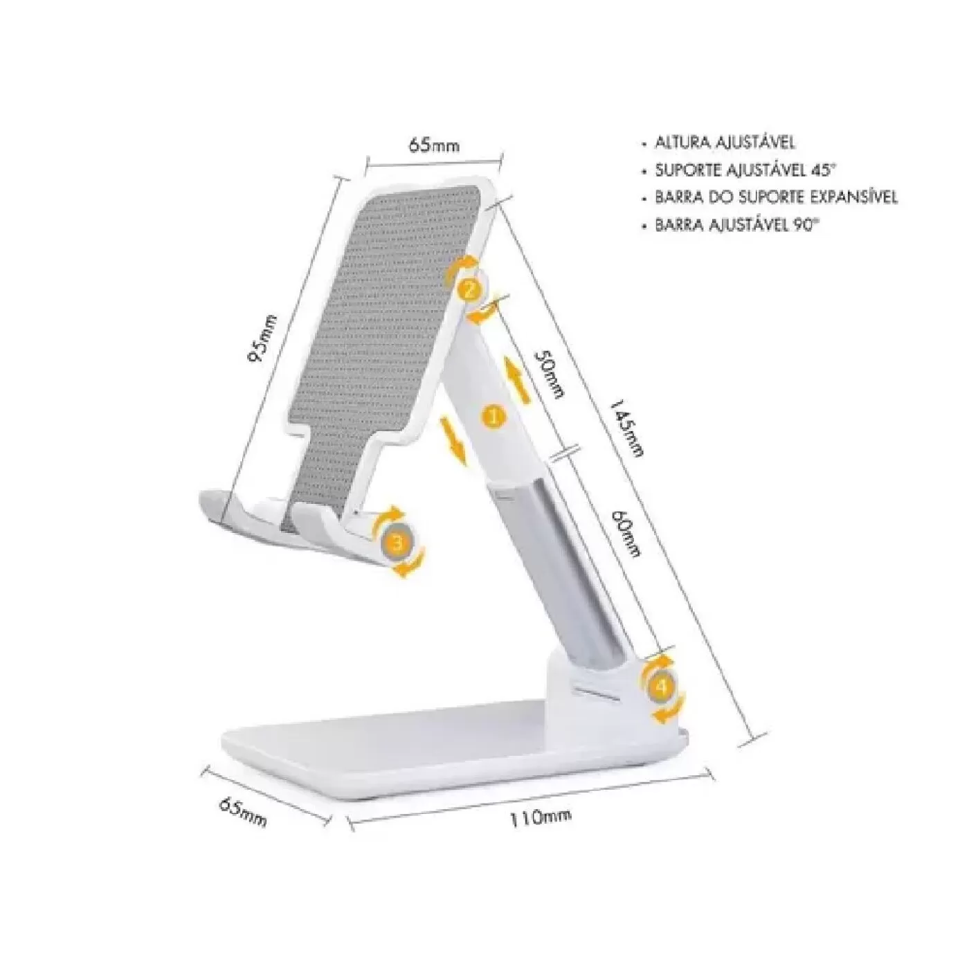 Suporte de celular para mesa que, além de ser muito decorativo, prático e moderno, é universal para todos os smartphones e tablets.
