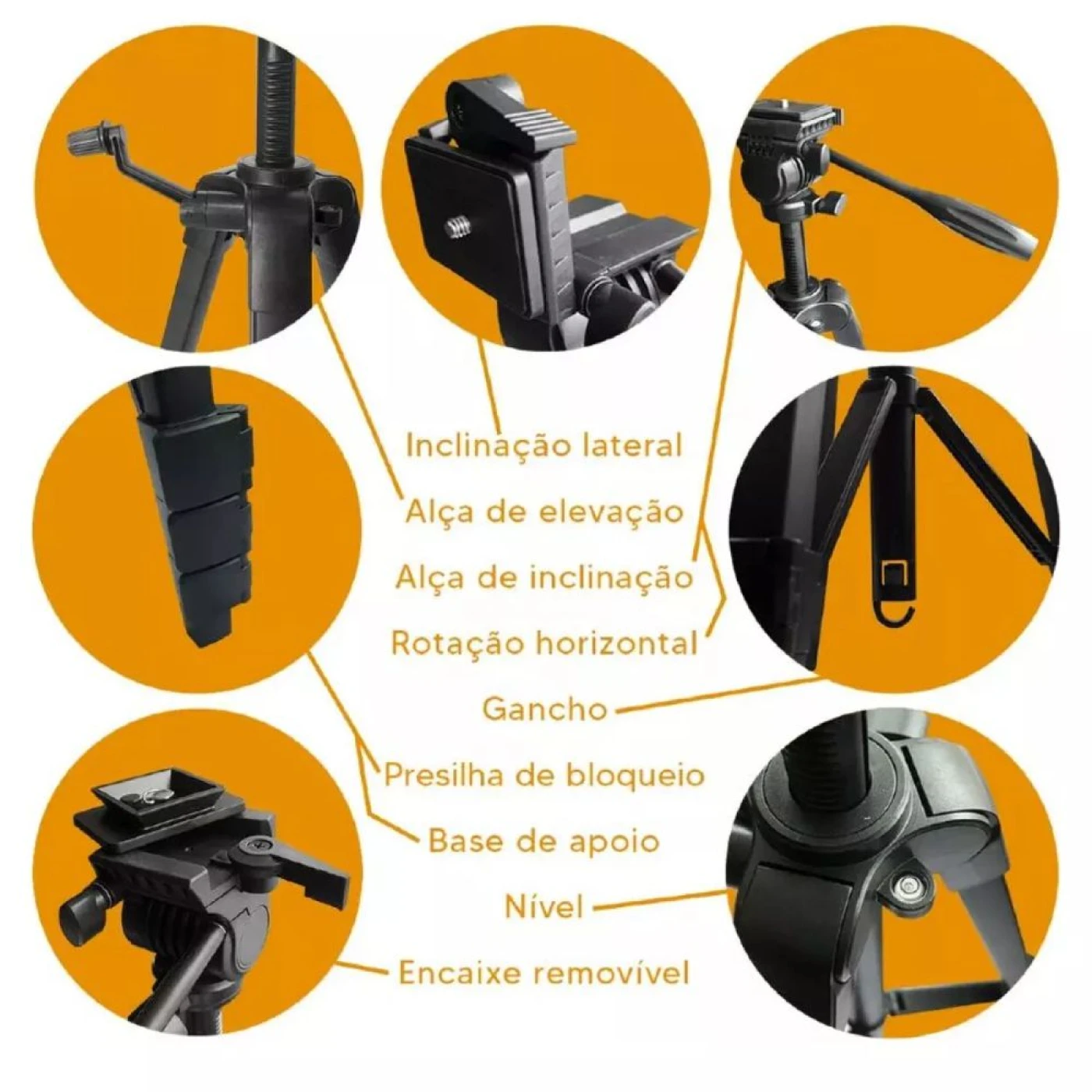 Nível Integrado: Inclui um nível bolha para garantir que suas fotos e vídeos estejam sempre perfeitamente alinhados.