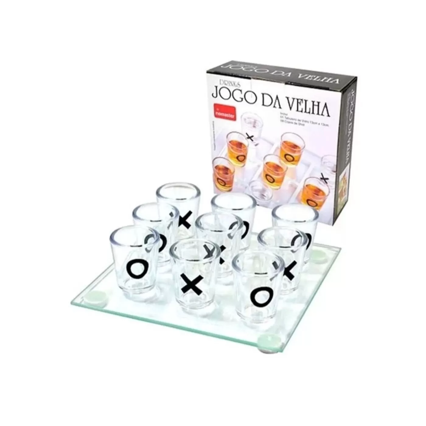 O Jogo da Velha é super fácil e divertido de jogar. Bastam duas pessoas para a alegria ficar garantida! Encha os copinhos com a sua bebida predileta e depois tente colocar 3 de seus shots em uma linha, coluna ou diagonal do tabuleiro. O perdedor será condenado a beber os shots com o símbolo do vencedor. Uma maneira diferente, criativa e inovadora de brincar de Jogo da Velha! Excelente opção para presentear!