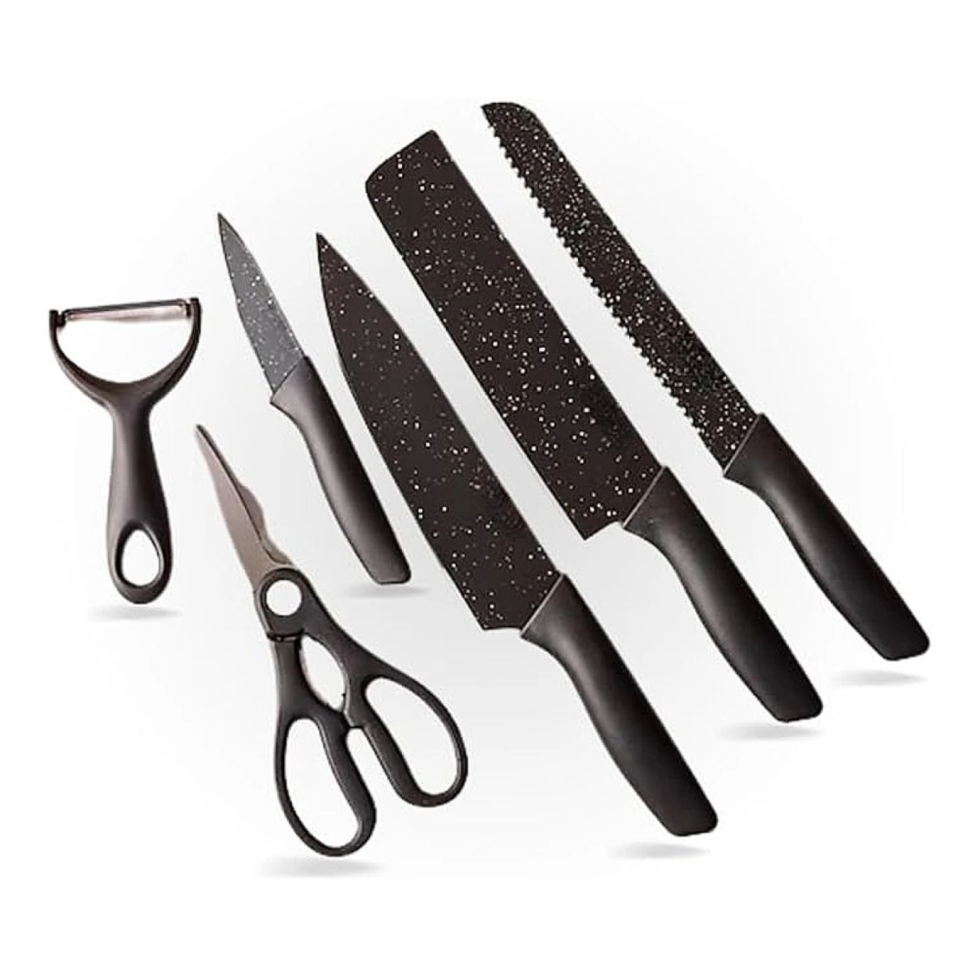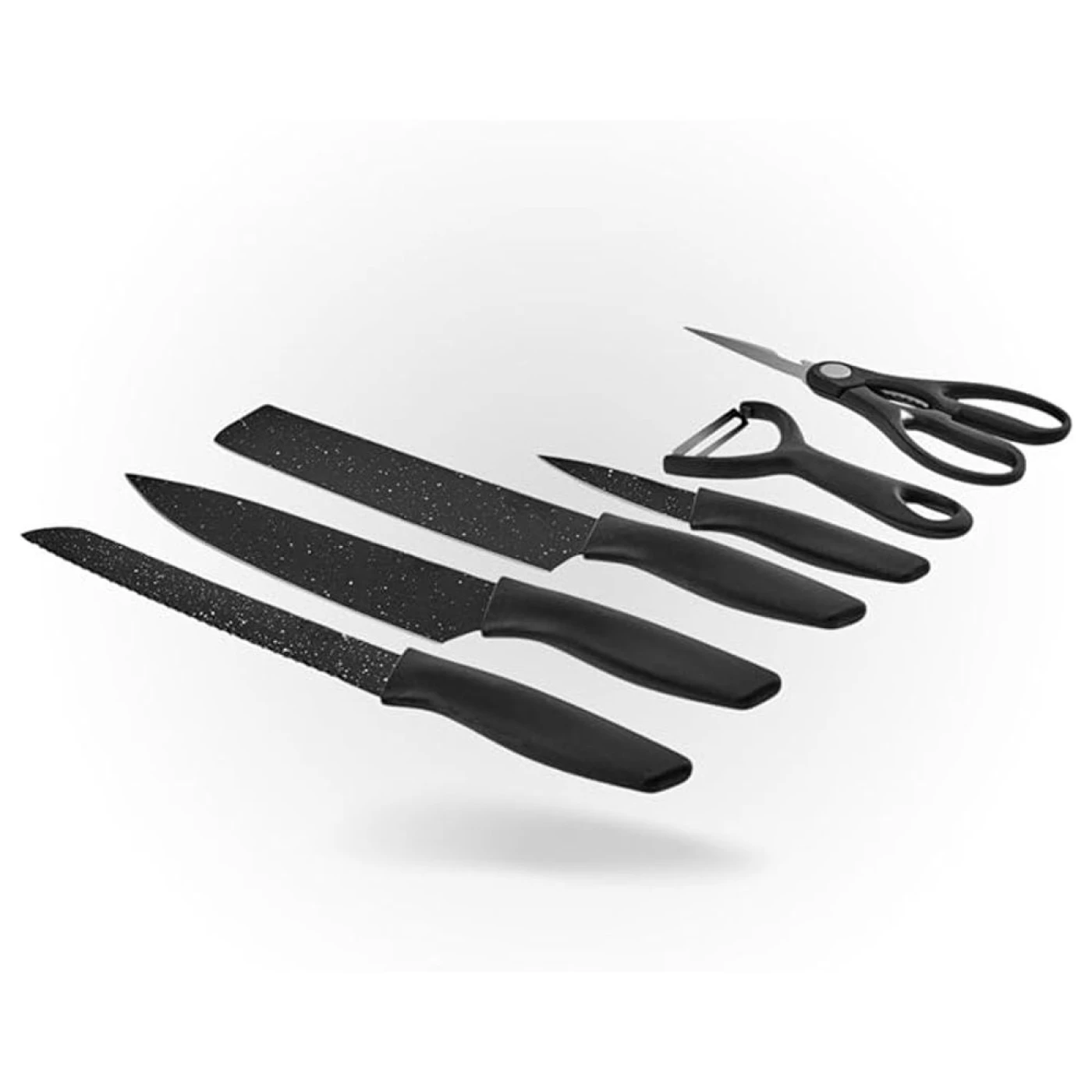 6 Peças Essenciais: O jogo é composto por 6 facas de diferentes tamanhos e funções, atendendo a diversas necessidades na cozinha. Desde o corte de carnes e vegetais até o preparo de pães e frutas, este conjunto tem tudo o que você precisa para realizar suas tarefas culinárias com perfeição.