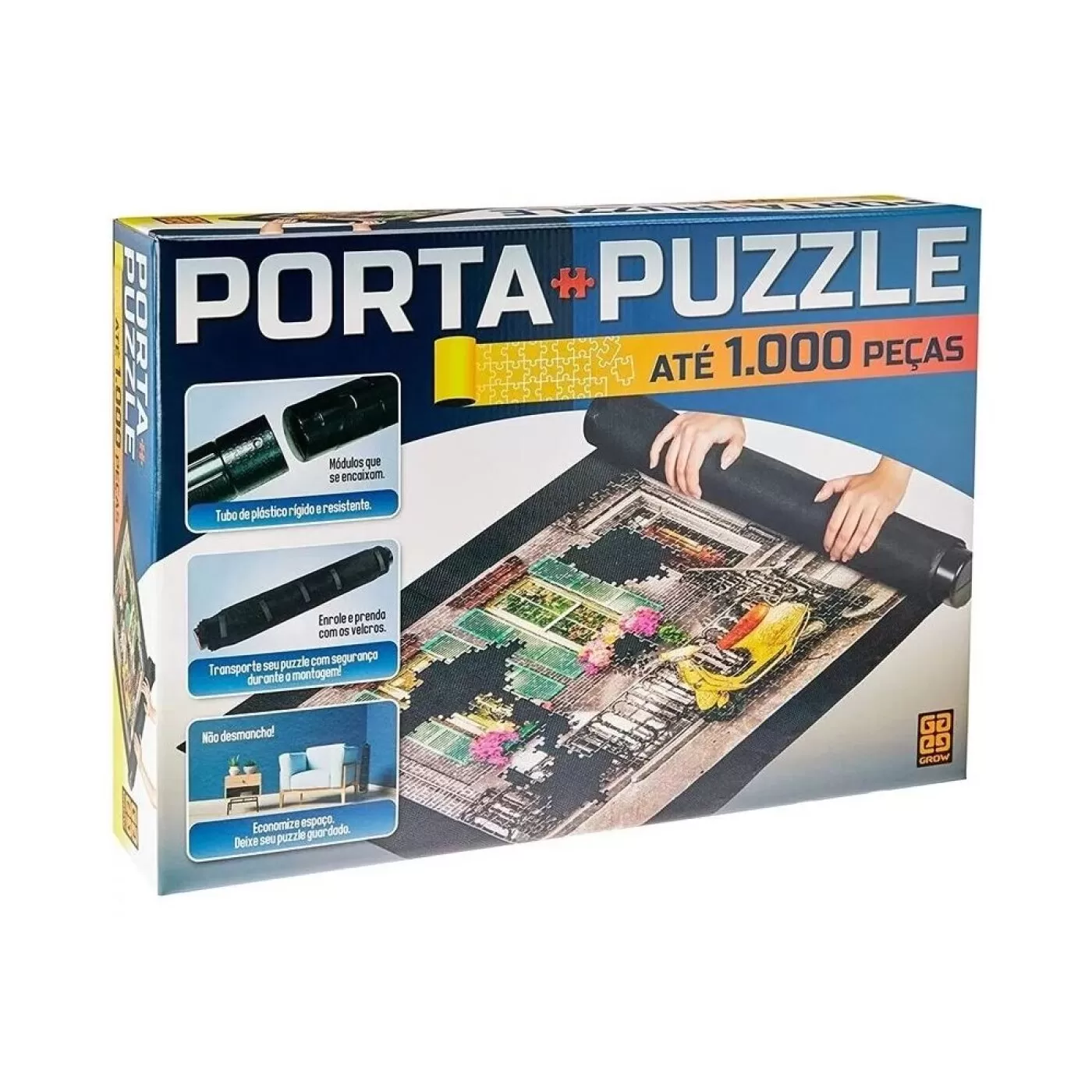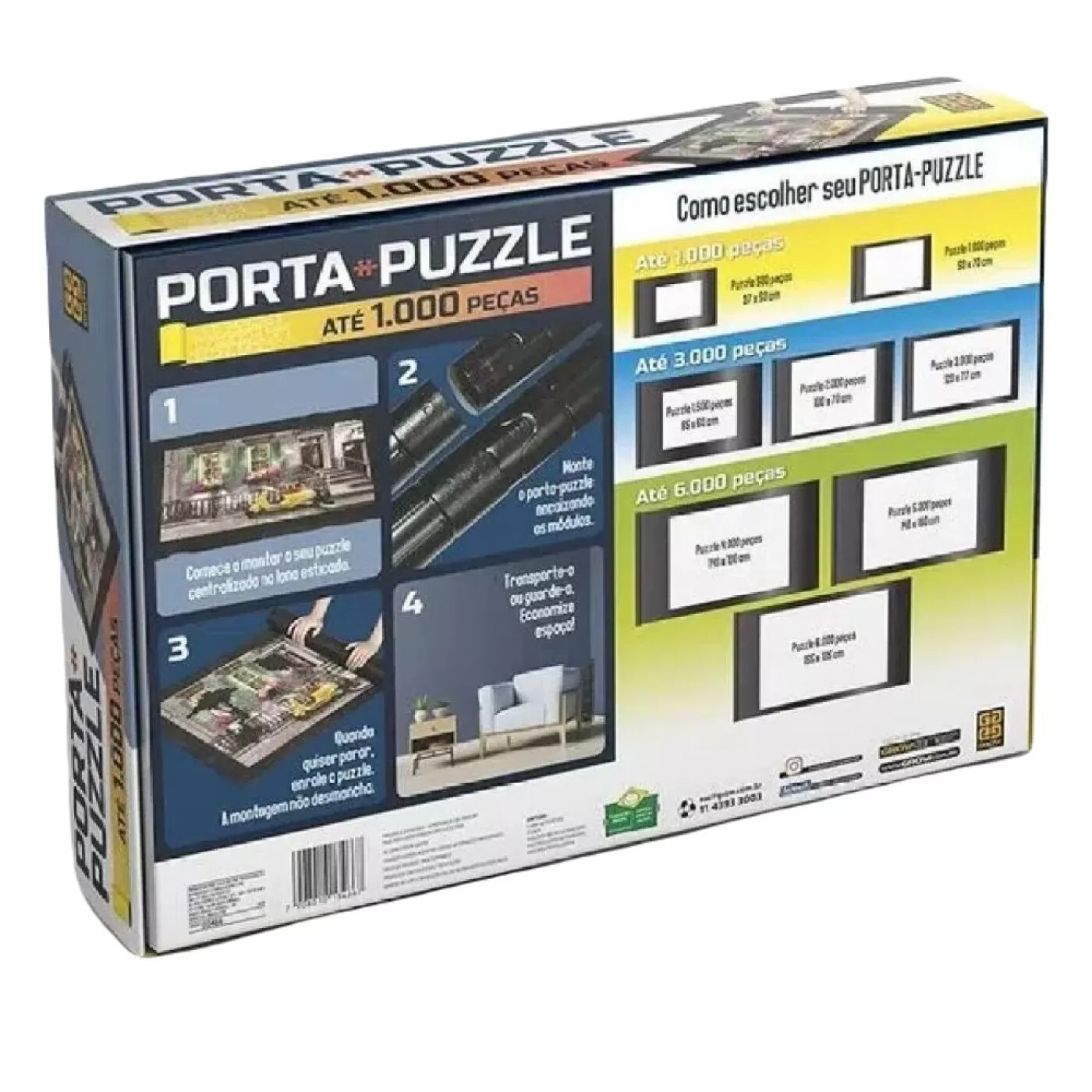 Descrição: Um sistema prático e ideal para guardar seu puzzle com segurança durante a montagem até terminá-lo. Com Porta-Puzzle você pode continuar montando seu puzzle mesmo durante as suas viagens. Basta enrolar e carregar, sem risco de desmontar ou perder peças.