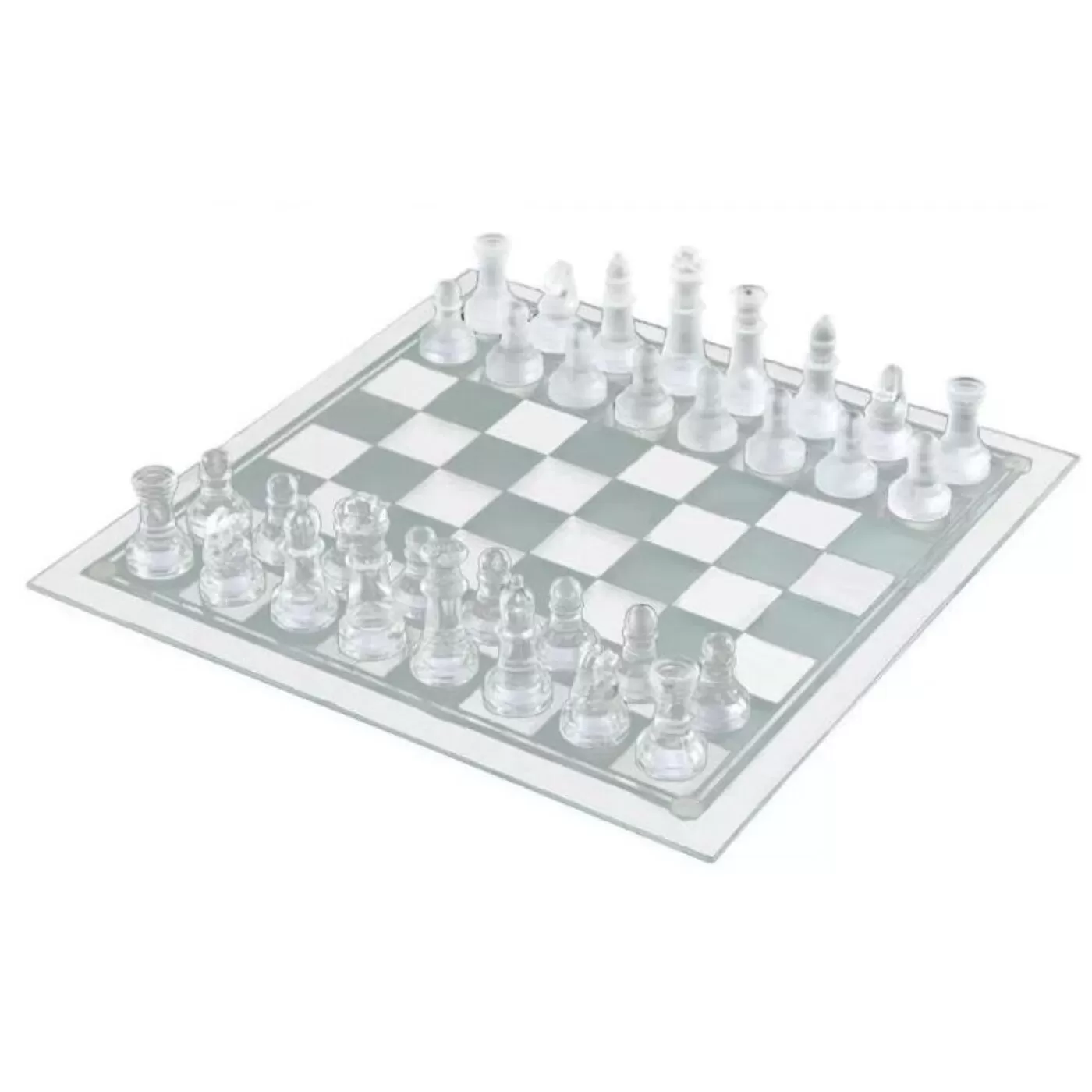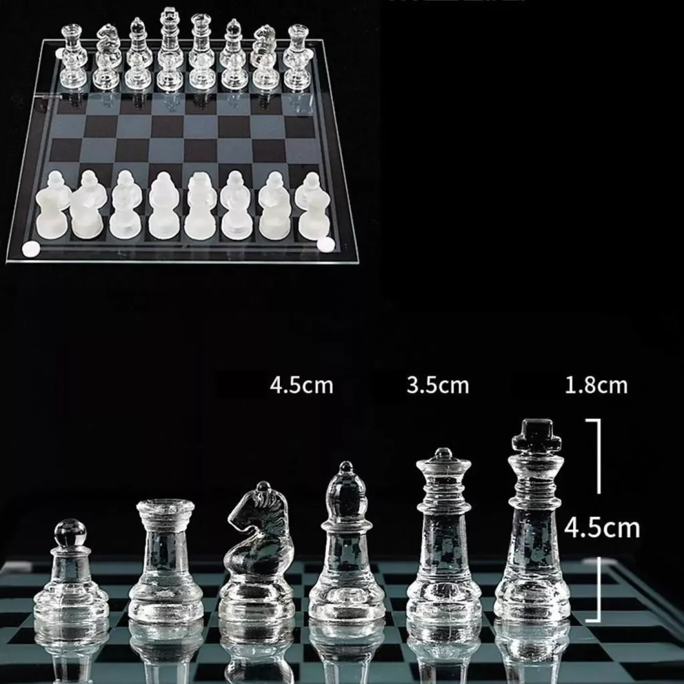 Jogo de Xadrez em Vidro com 32 peças, incrível para entretenimento de dois jogadores.