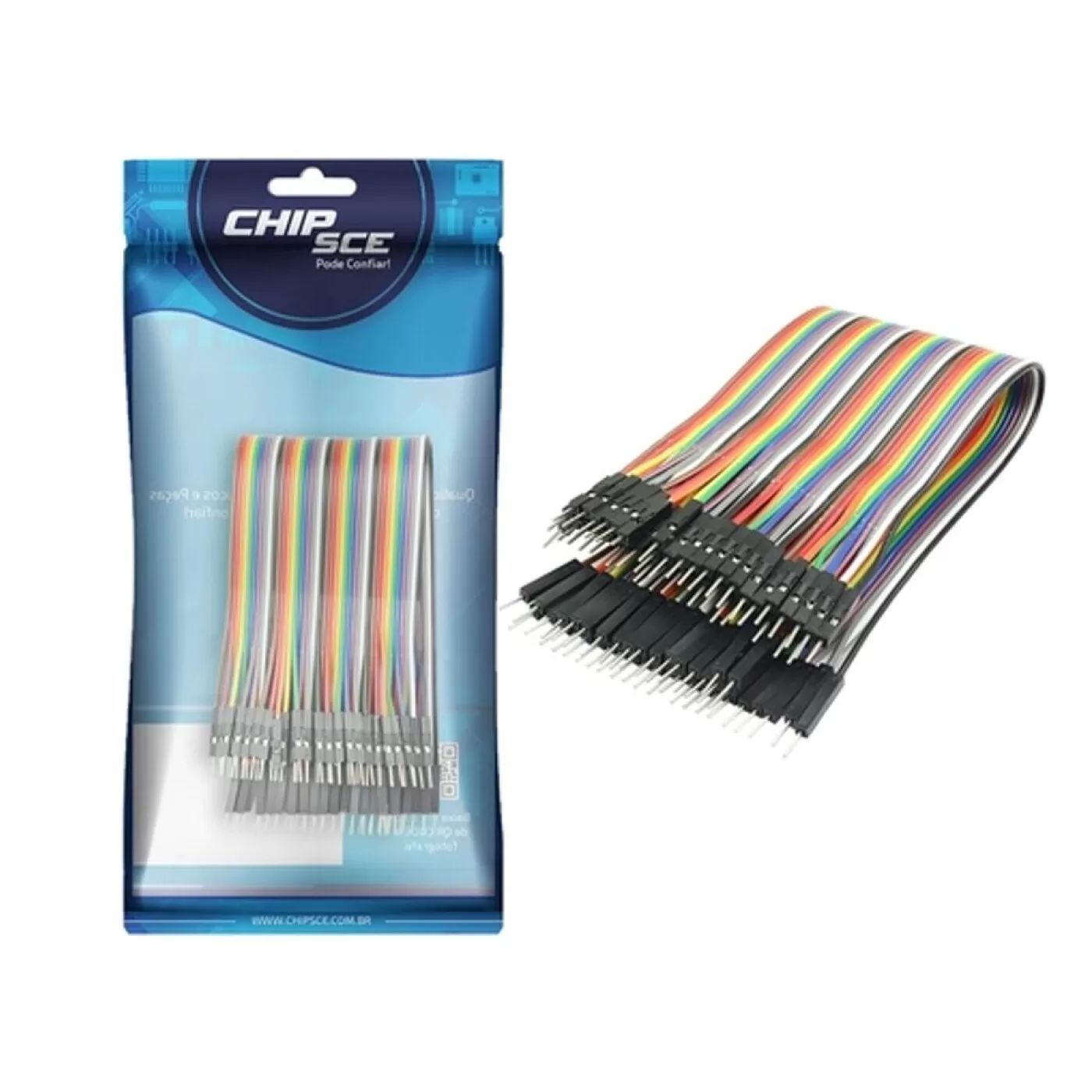 Jumpers com conexão macho-macho para montagem de projetos em protoboard e prototipagem.