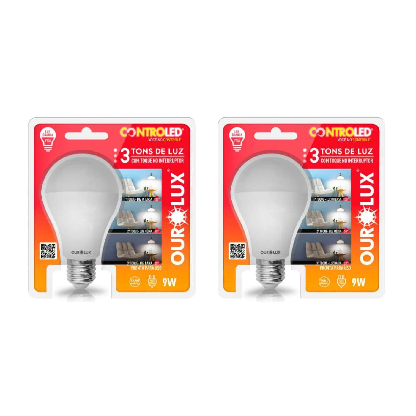 » Conteúdo da Embalagem: 2x Lâmpadas Controle 3 Tons 6500K + Luz Intensa, Média e Baixa OuroLux