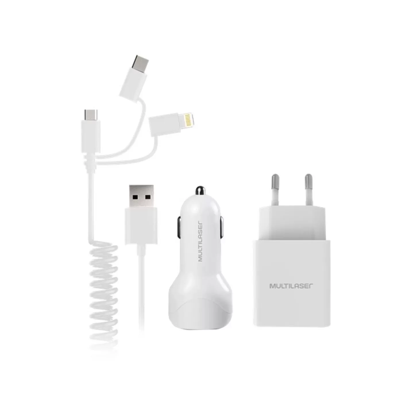 Kit Carregador Auto Multilaser Cabo Espiral CB129 - Branco