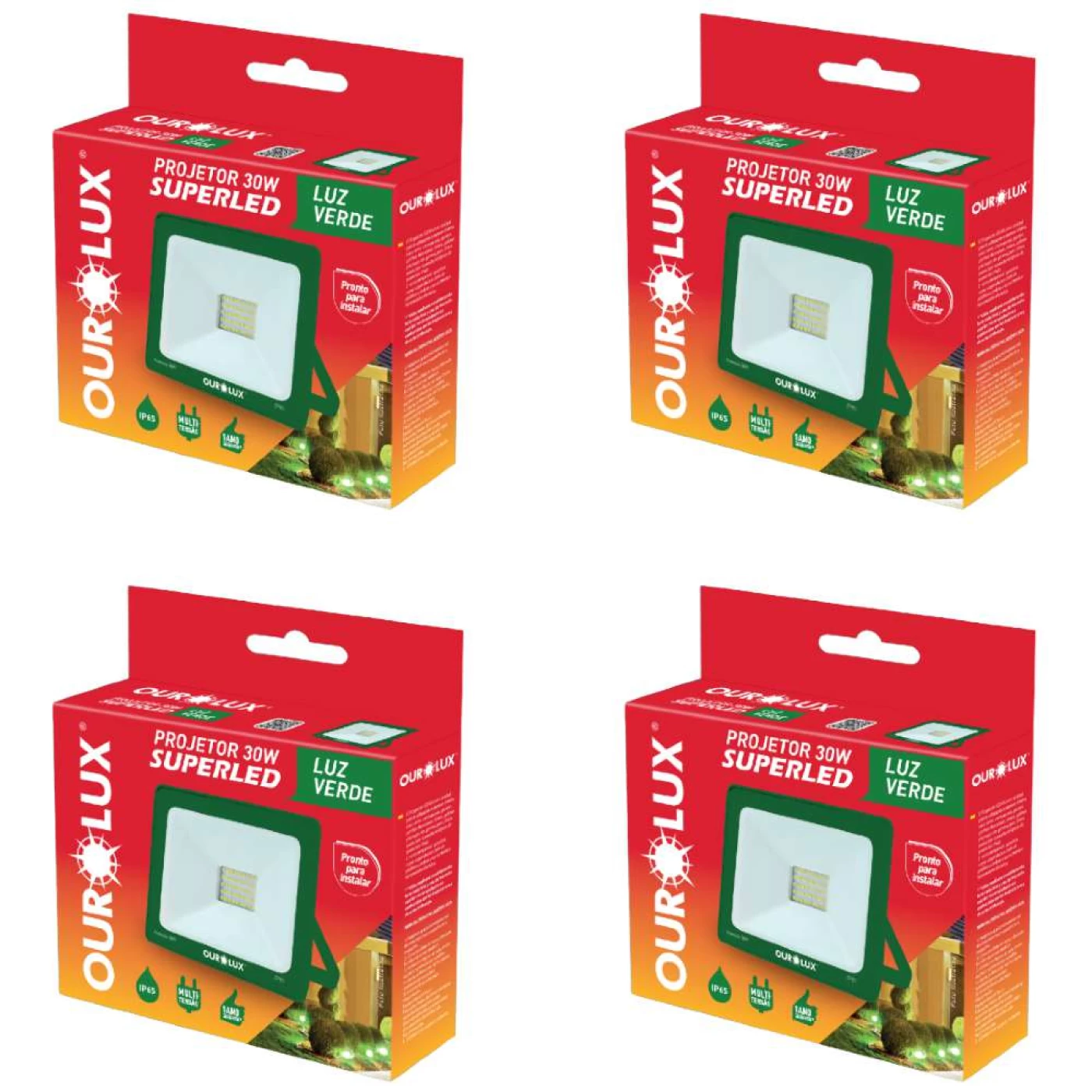 » Conteúdo da Embalagem: 4x Refletores SuperLed 30W Verde Ourolux