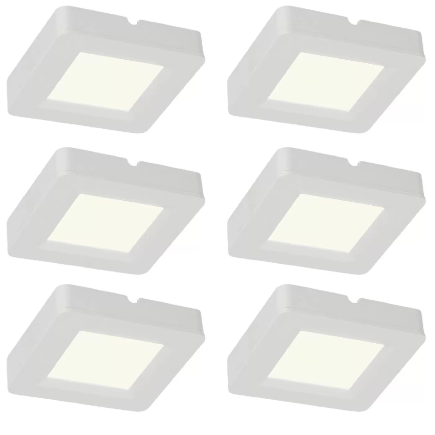 Seu diferencial é a versatilidade, são duas formas de uso: sobrepor ou embutir, em um único produto. Conta com corpo em ABS branco, lente de policarbonato e ângulo de abertura de 106°. Atende as variações de tensão entre 110V e 220V, além da temperatura branco frio 6.500K.