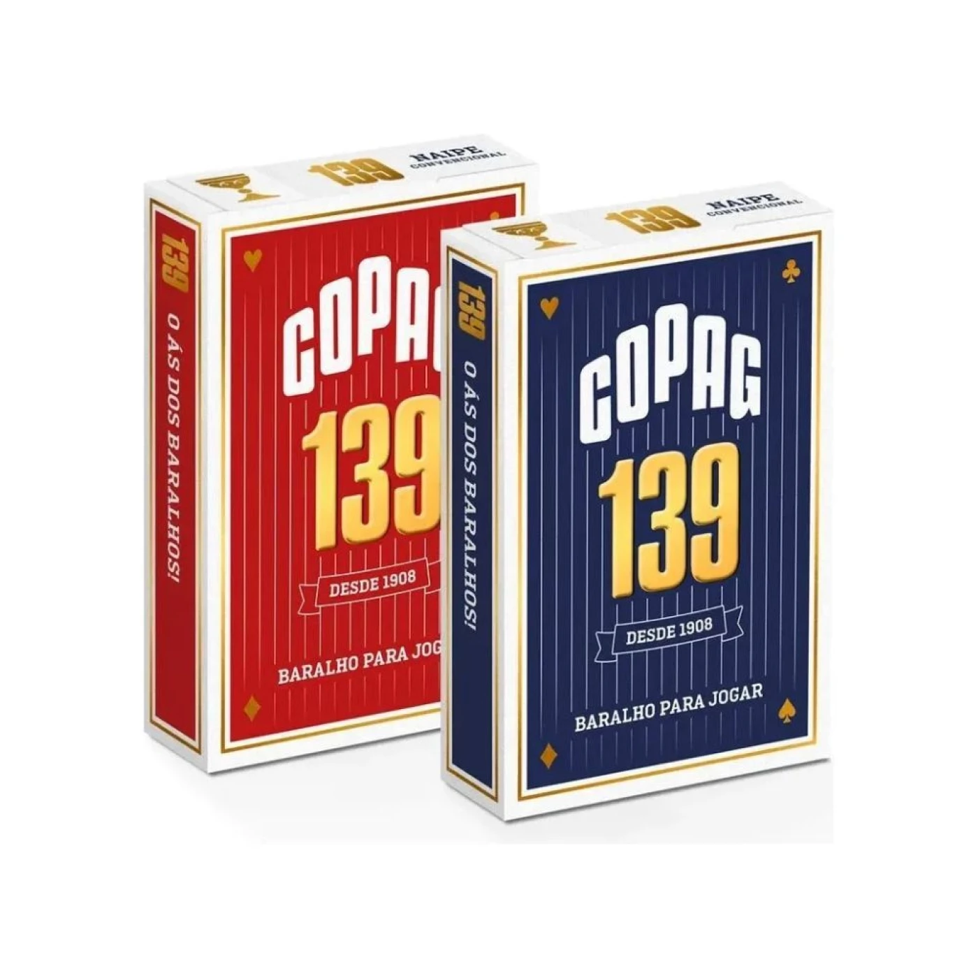 O Kit Baralho 139 Copag é ideal para jogos tradicionais como Truco, Buraco, Paciência, entre outros. Este conjunto acompanha dois baralhos completos no modelo convencional 139, sendo um na cor vermelha e outro azul, totalizando 110 cartas (55 cartas por baralho). As cartas possuem tamanho padrão e são fabricadas em papel-cartão de alta qualidade, garantindo durabilidade, conforto no manuseio e ótimo desempenho durante as partidas.
