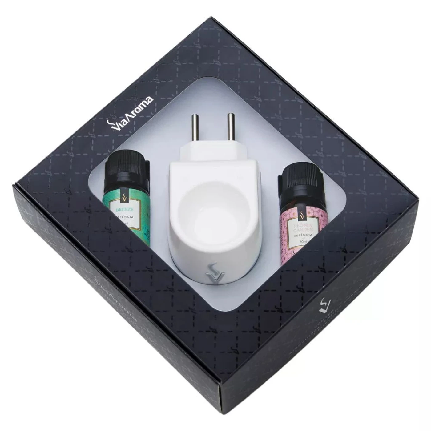 O Kit Presente Aromatizador Elétrico Standard com Essência Breeze e Peônia Garden Via Aroma é um mimo cheiroso para presentear amigos e família.