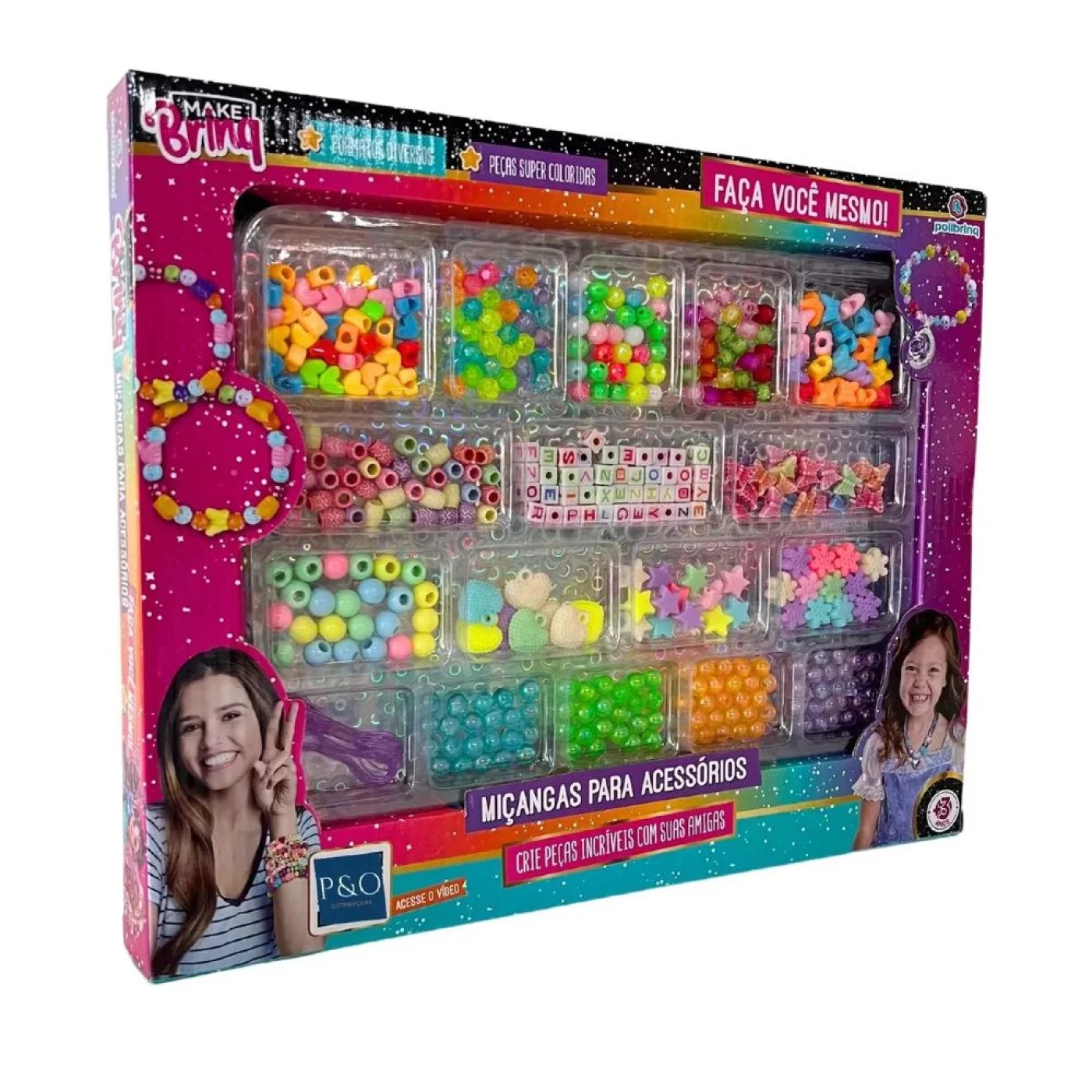 O Kit Miçanga Infantil Pulseira Colar Colorida Faça Você Mesmo da marca Brinquedo Polibrinq é perfeito para meninas de 8 a 13 anos. Com 17 peças, incluindo miçangas, acessórios e formatos diversos, é ideal para criar pulseiras e colares coloridos. Recomendado para crianças a partir de 3 anos, é uma ótima opção de presente criativo e divertido. Com este kit, as crianças podem soltar a imaginação e criar suas próprias joias de forma fácil e divertida