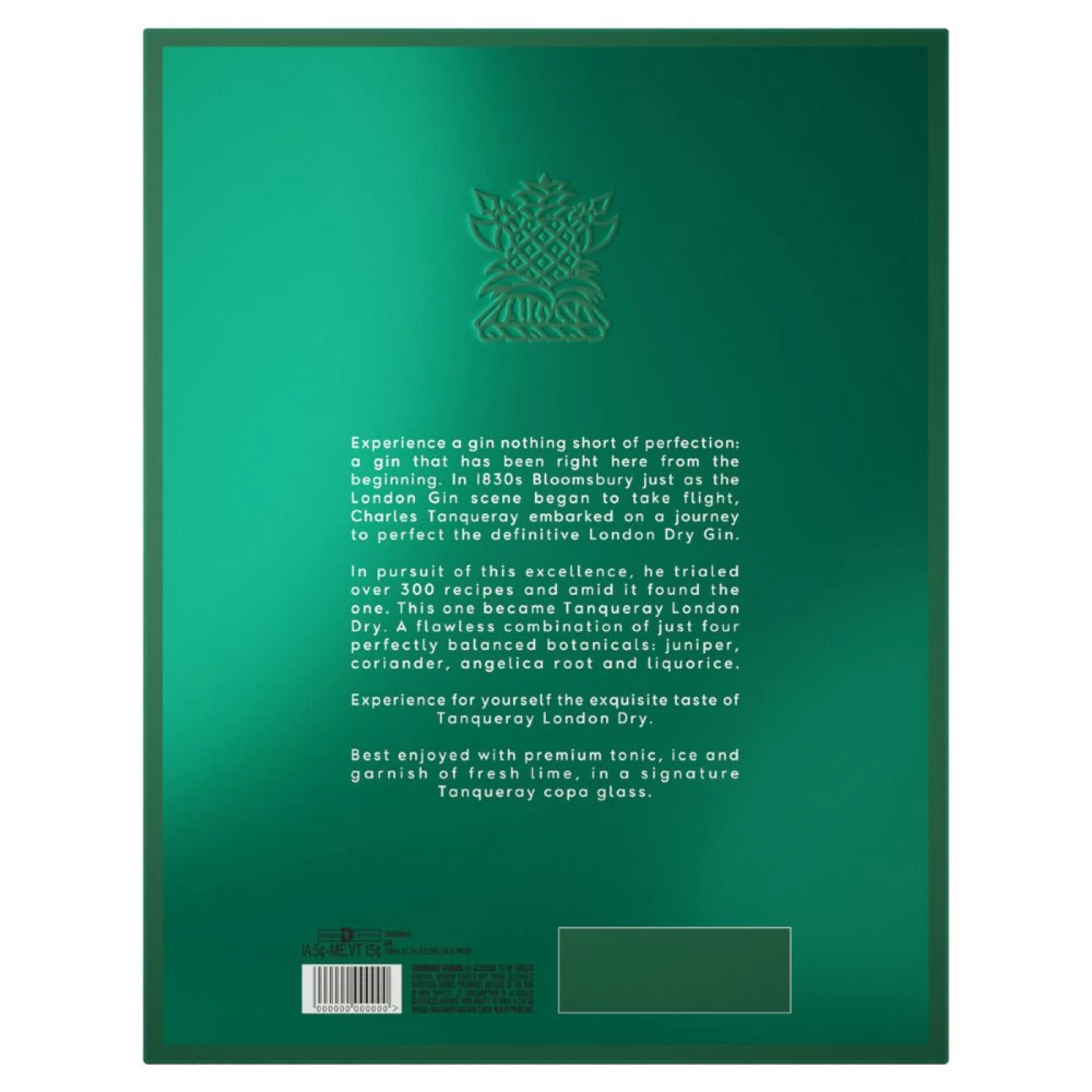 » O icônico design da garrafa de Tanqueray é uma atualização contemporânea do design original de 1948, que, por sua vez, foi inspirado na forma de uma coqueteleira clássica. O famoso brasão da família Tanqueray em relevo no vidro de cada garrafa apresenta um abacaxi, um símbolo histórico de hospitalidade e recepção calorosa.