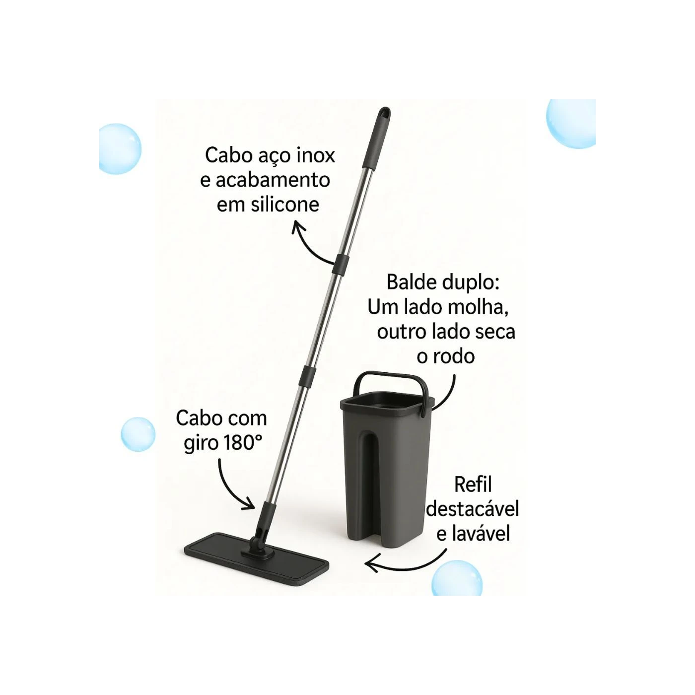 Kit Mop Retangular Plano Com Refil E Balde Casita Ca15202 8L