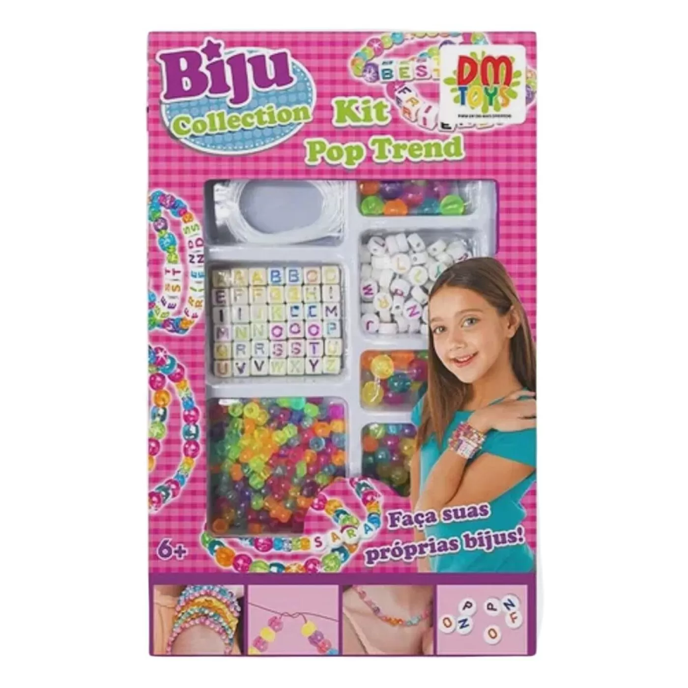 Acompanha miçangas em diversas formas e cores, pingentes e cordões! As pequenas fãs de Biju vão amar esse presente!