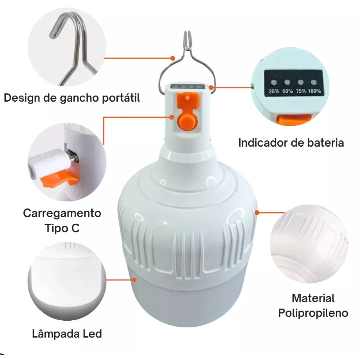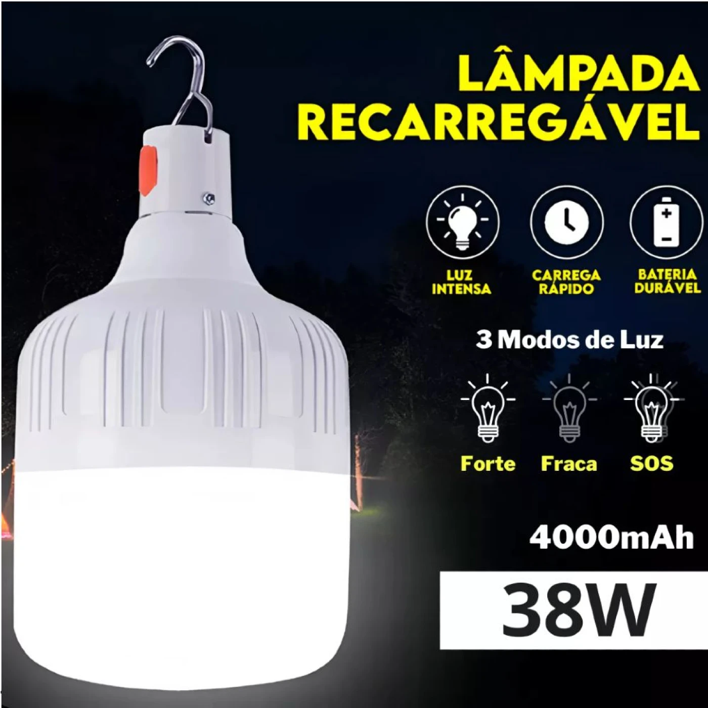Além de ser prática, essa lâmpada oferece uma iluminação de qualidade com luz branca, sendo ideal para ambientes residenciais e comerciais. Seja em casa, em áreas externas, camping ou situações de emergência, ela é uma solução versátil e indispensável.