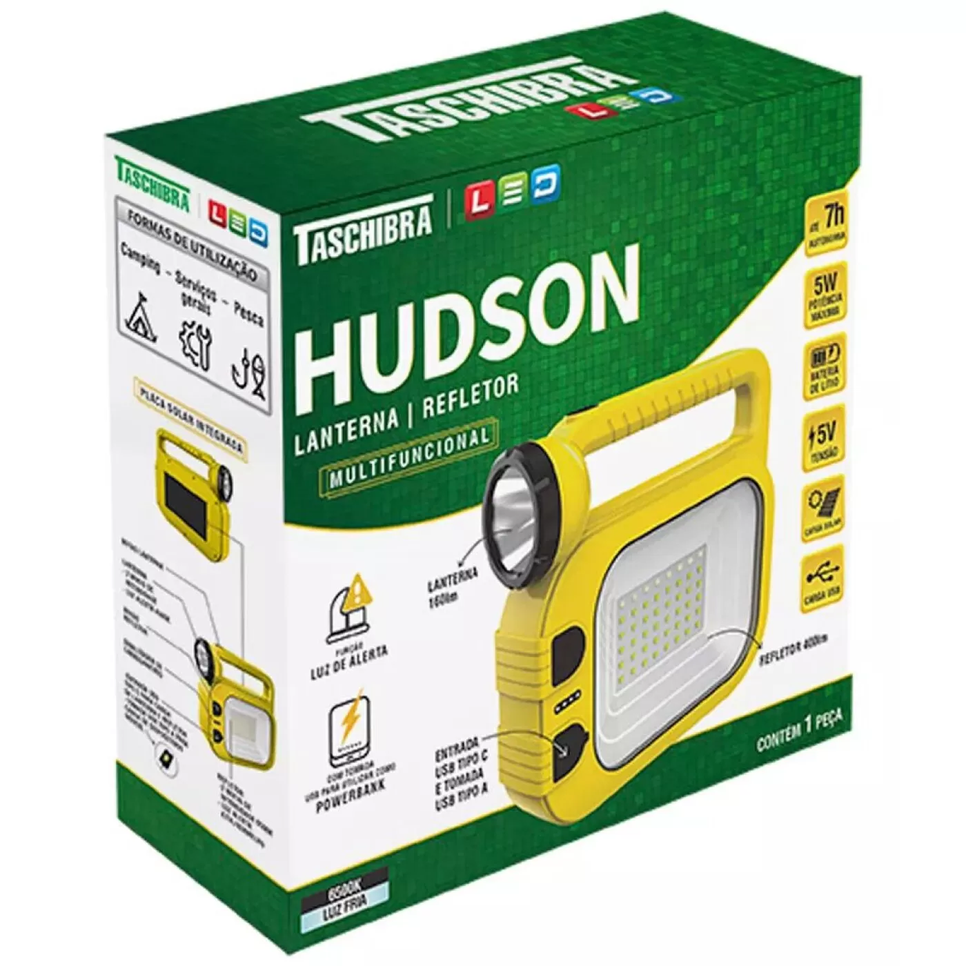 Lanterna Refletor Hudson Taschibra Carga Solar e Carga Usb 5w 6500k