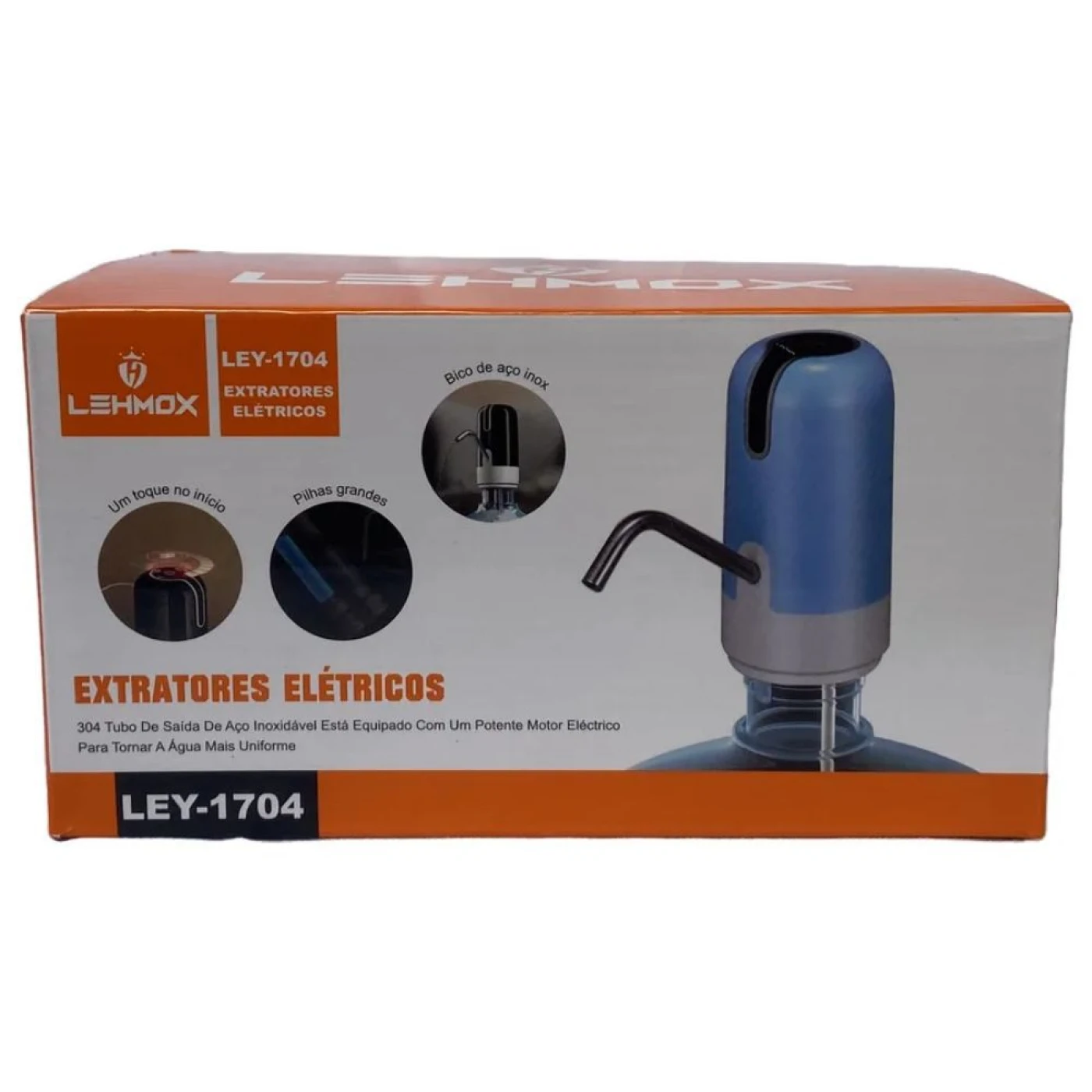 A bomba elétrica Ley-1704 é ideal para facilitar o consumo de água em galões de 10L, 20L ou 50L. Compacta, leve e prática, permite a extração de água com apenas um toque. Possui bateria interna recarregável via cabo USB, garantindo autonomia para vários dias de uso com uma única carga. A instalação é simples e rápida, sem a necessidade de ferramentas.