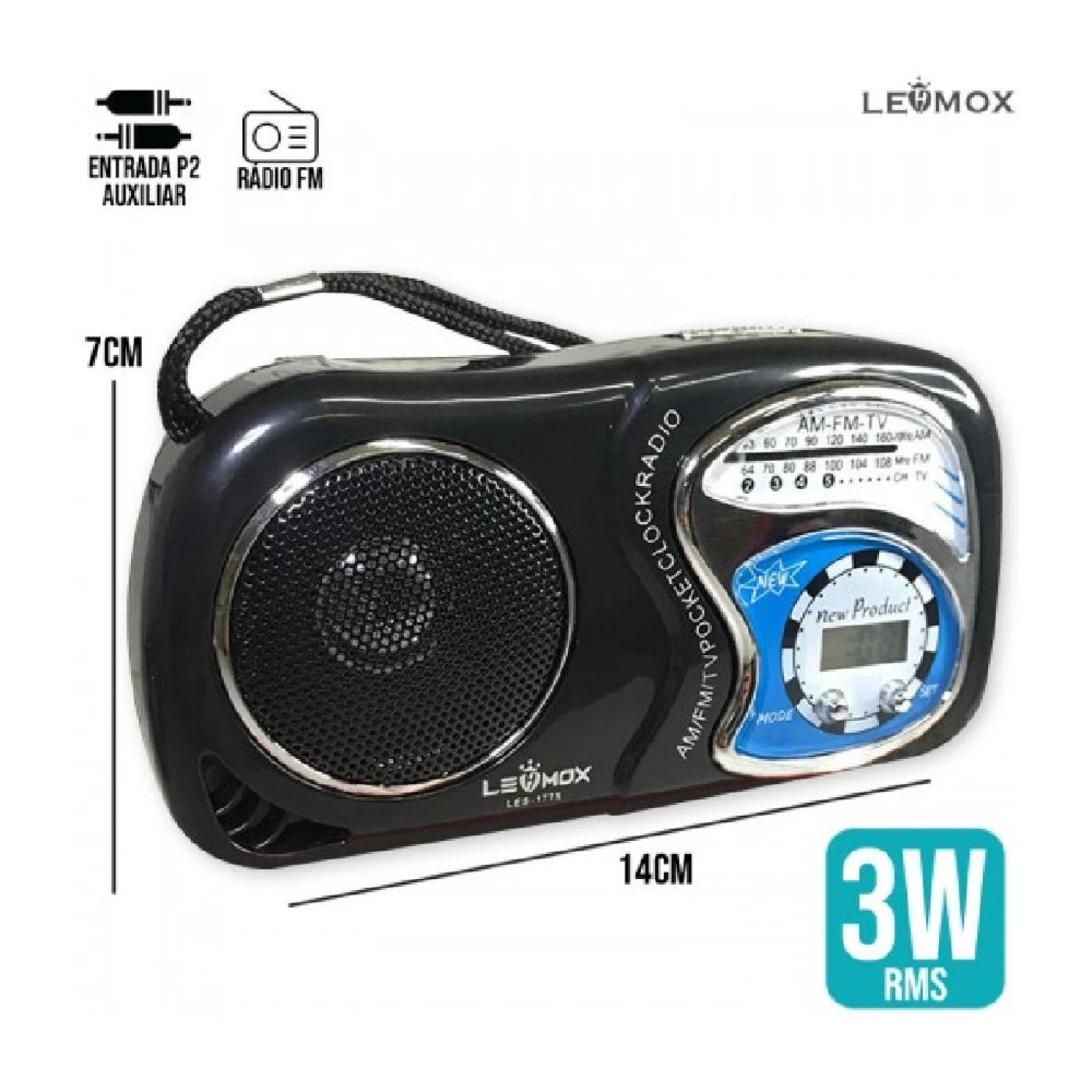 Combine praticidade e versatilidade com o Rádio de Bolso com Relógio AM/FM/TV Lehmox. Compacto e elegante, este rádio de bolso é perfeito para quem busca entretenimento e funcionalidade em um único dispositivo. Com um design moderno na cor preta, ele se adapta facilmente ao seu estilo e necessidades.